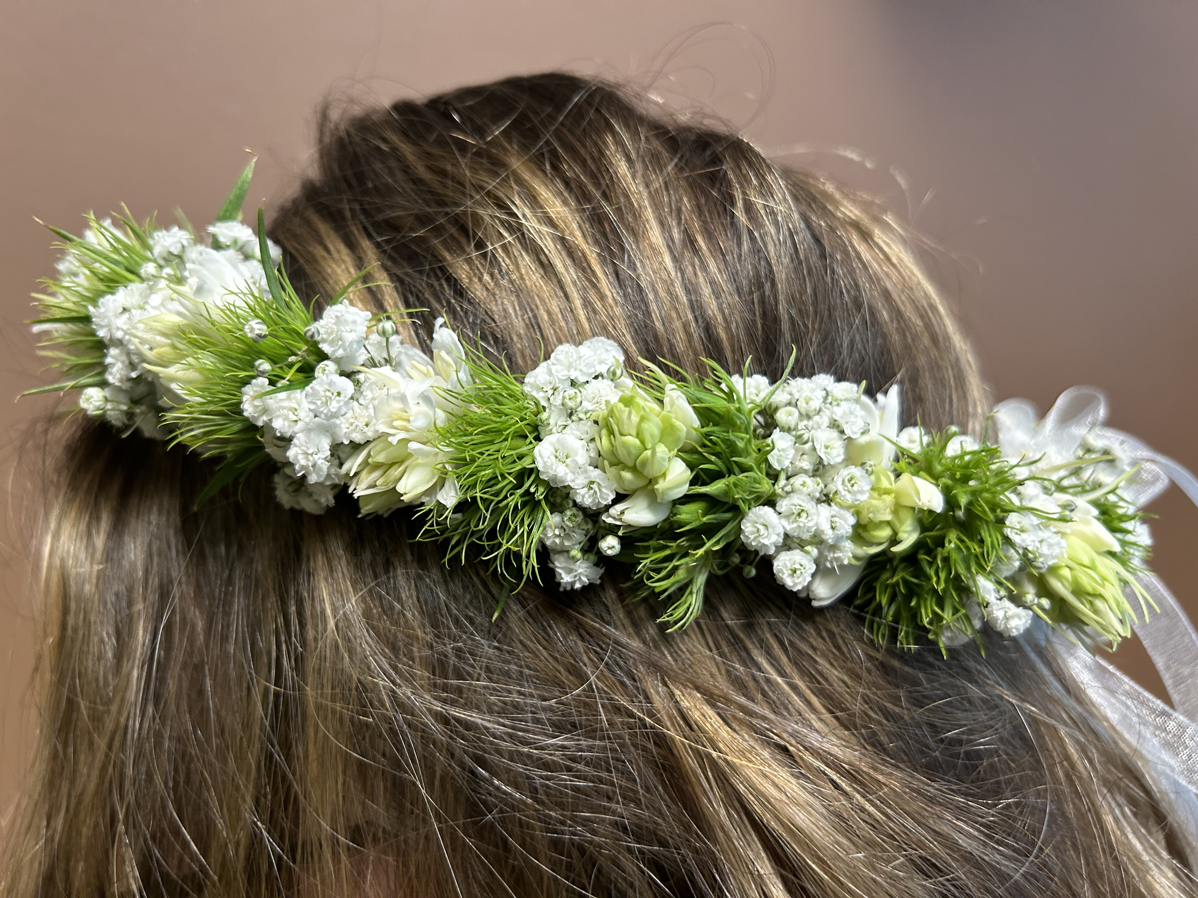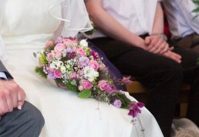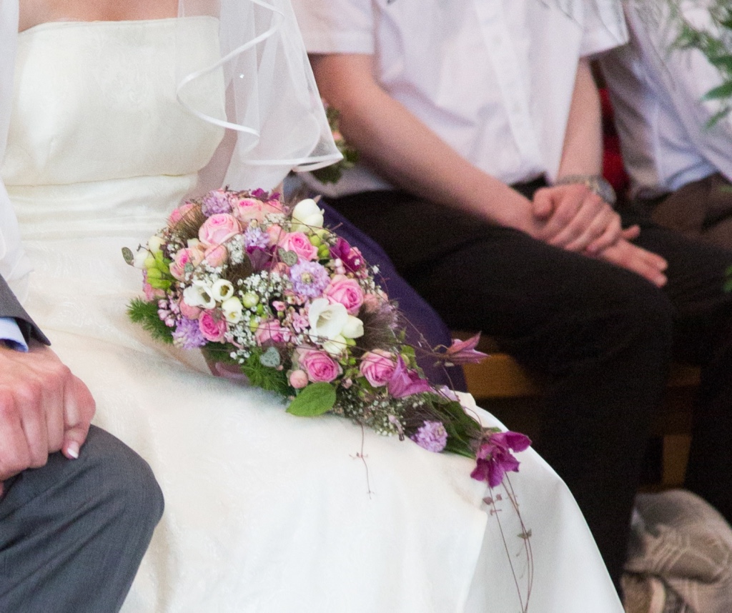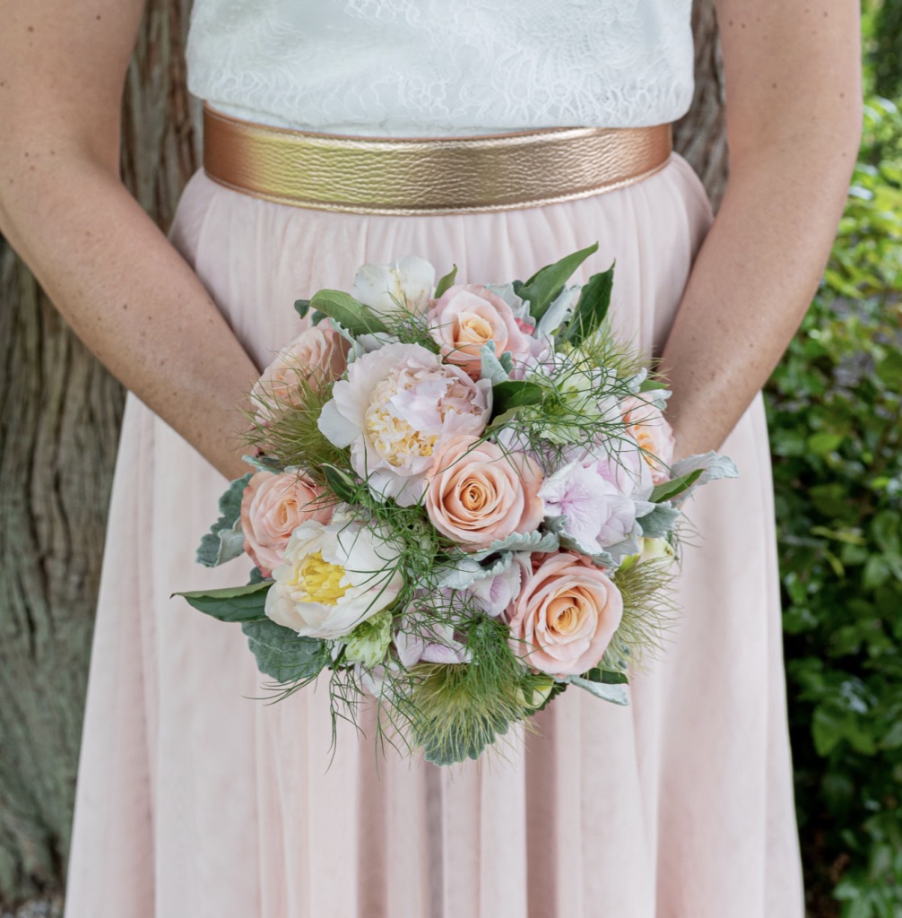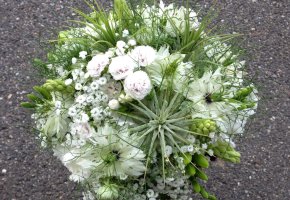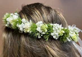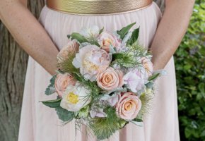 Auch der Strauss der Brautführerin und der Schmuck der Blumenkinder sollen dazu passen.