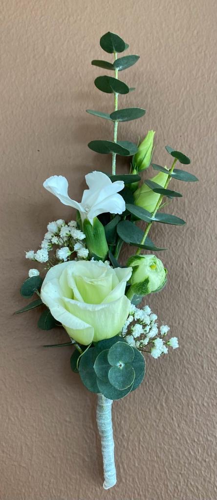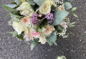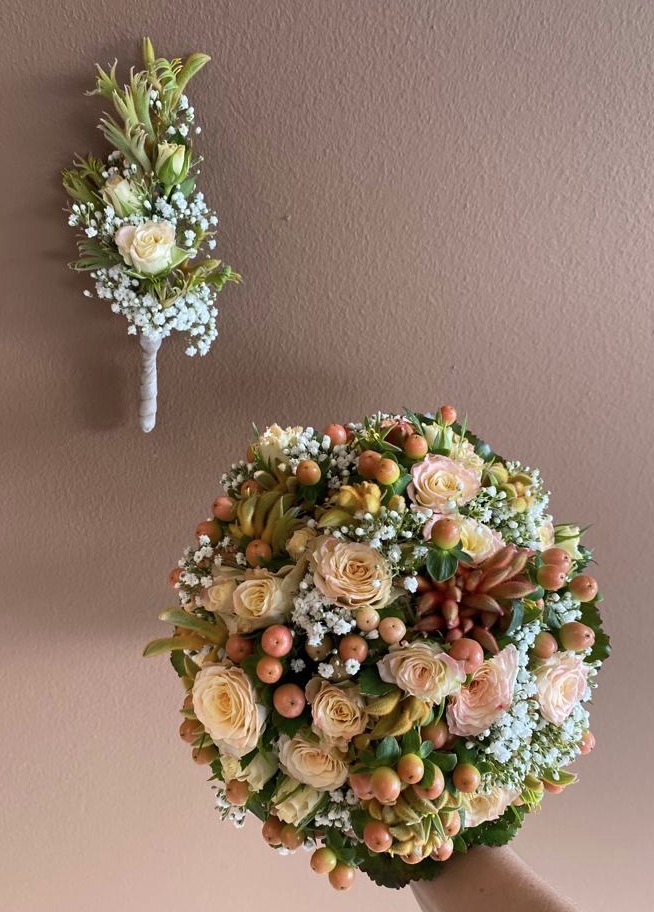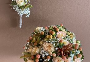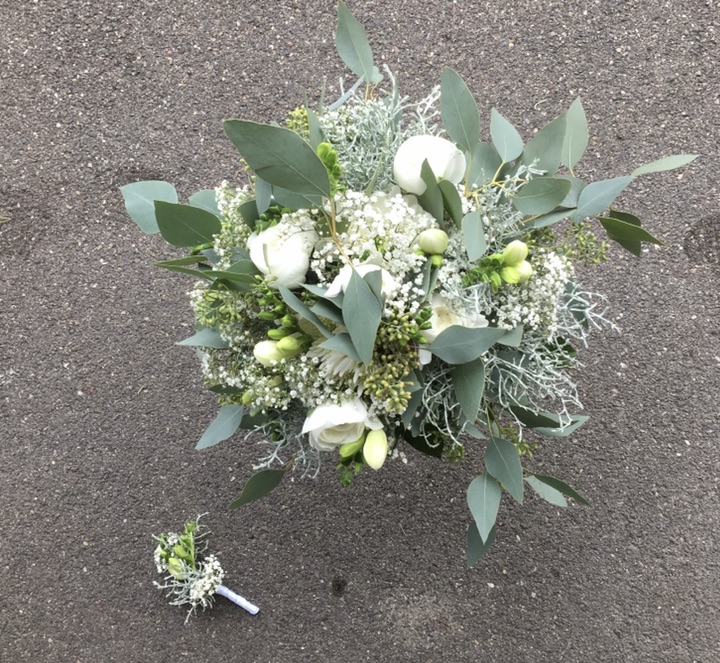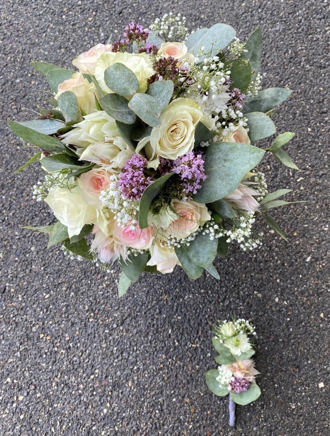 Der Brautstrauss und ein passender Anstecker für den Bräutigam.