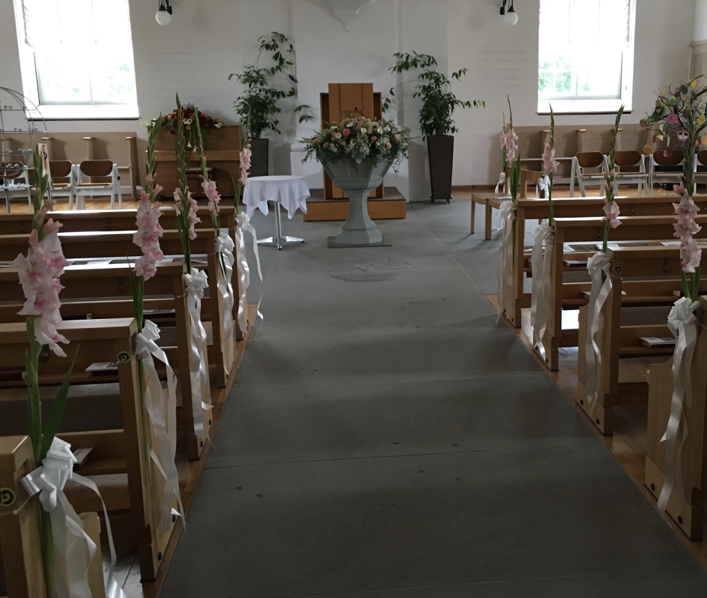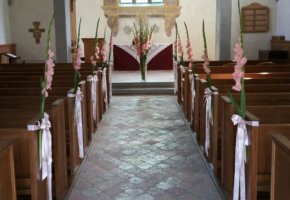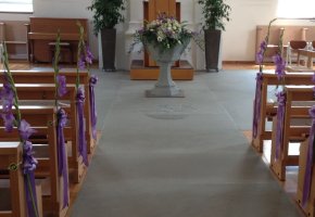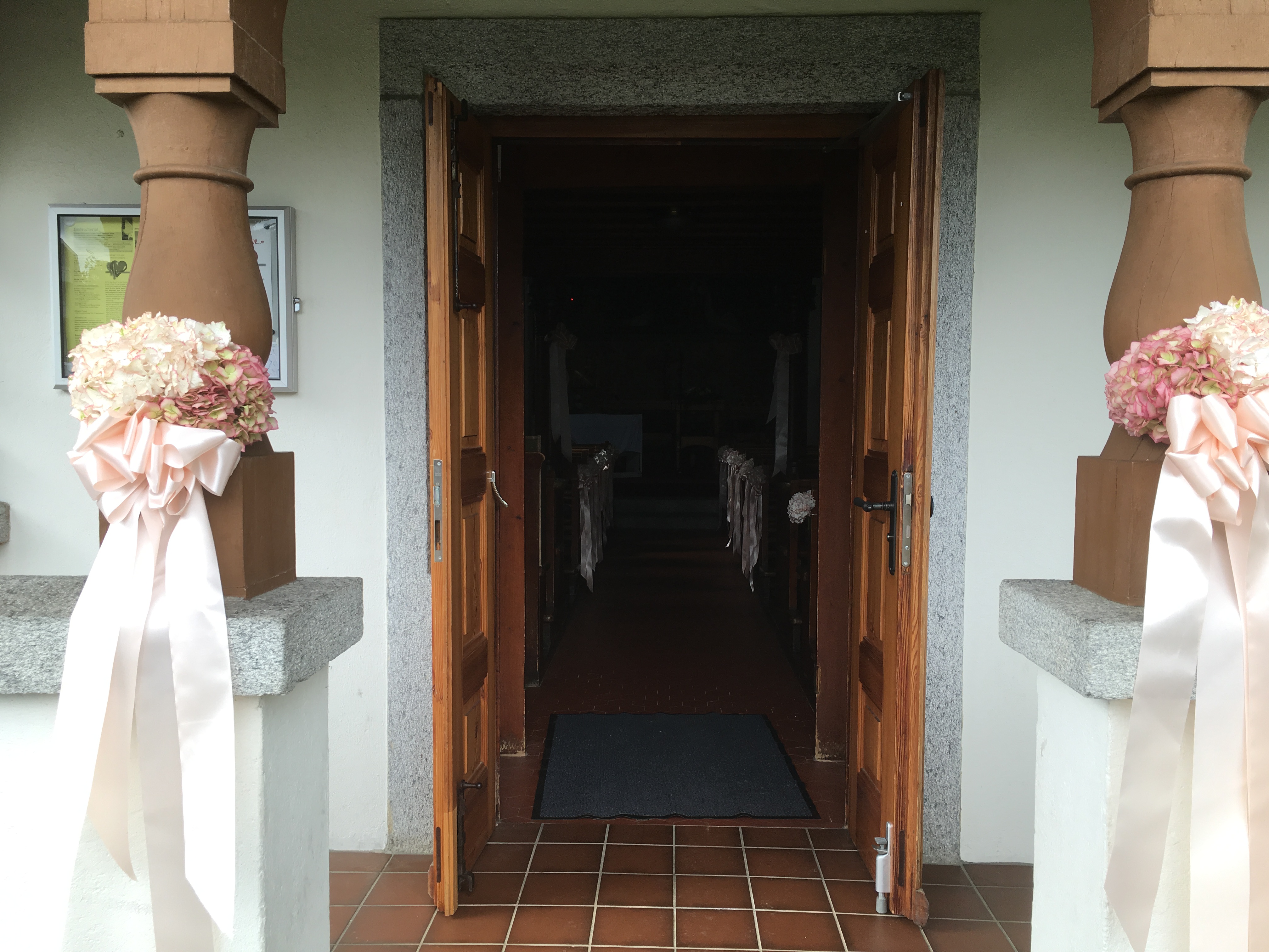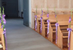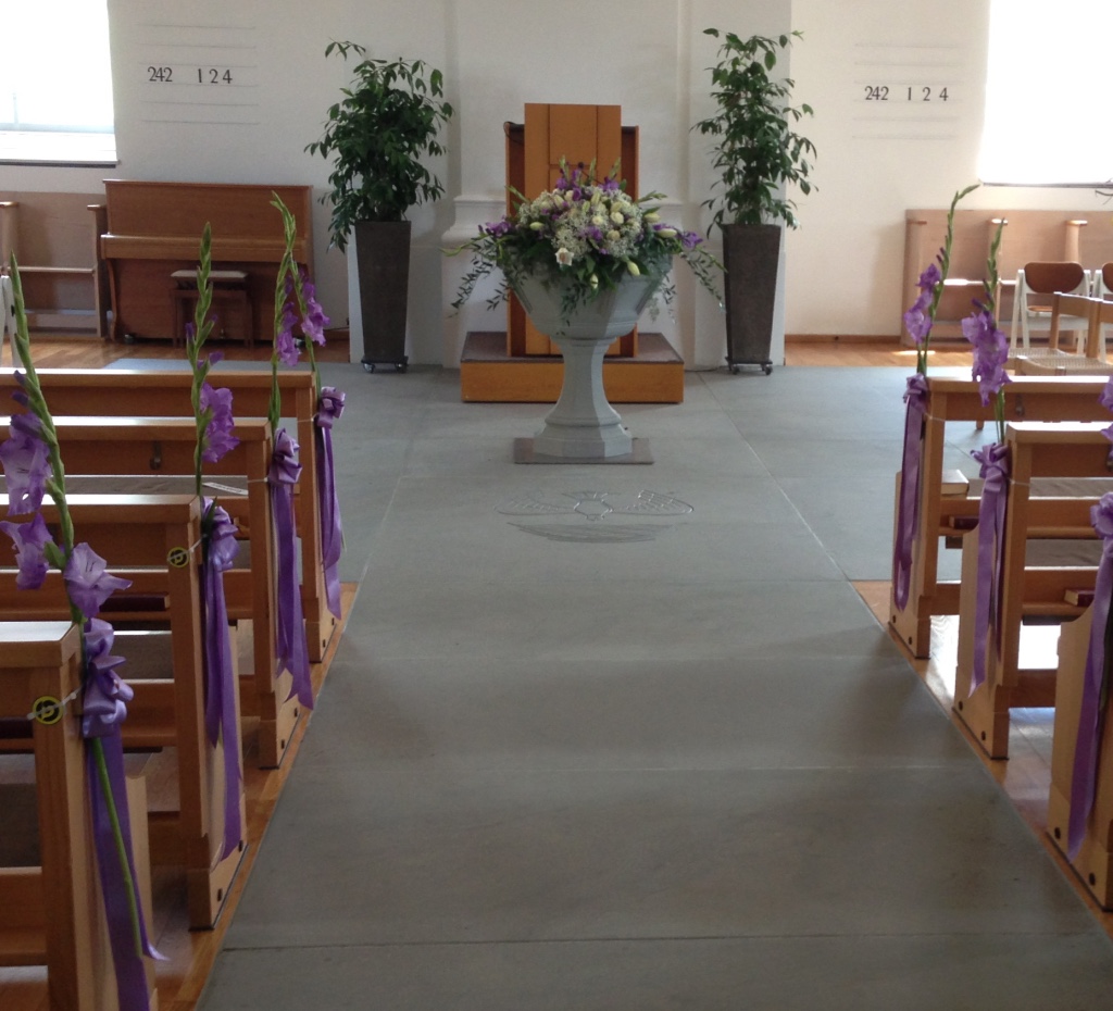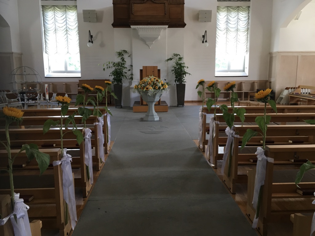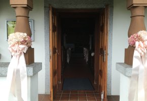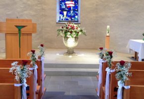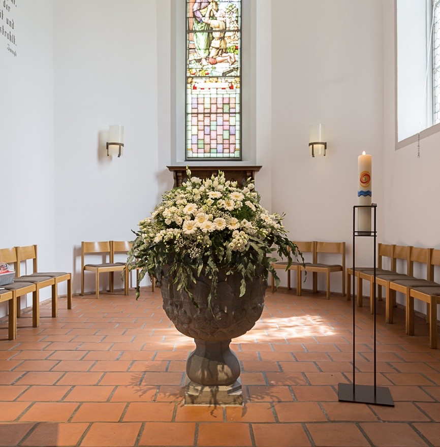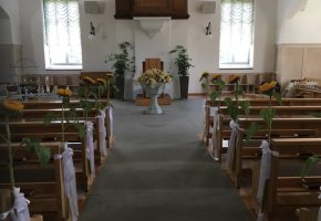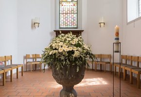 Ein Gesteck auf dem Taufstein, Banksträusse oder einzelne Blumen in der Kirche heissen Ihre Gäste Willkommen.