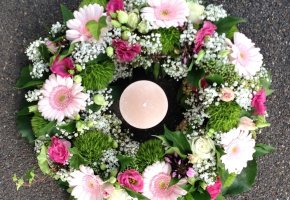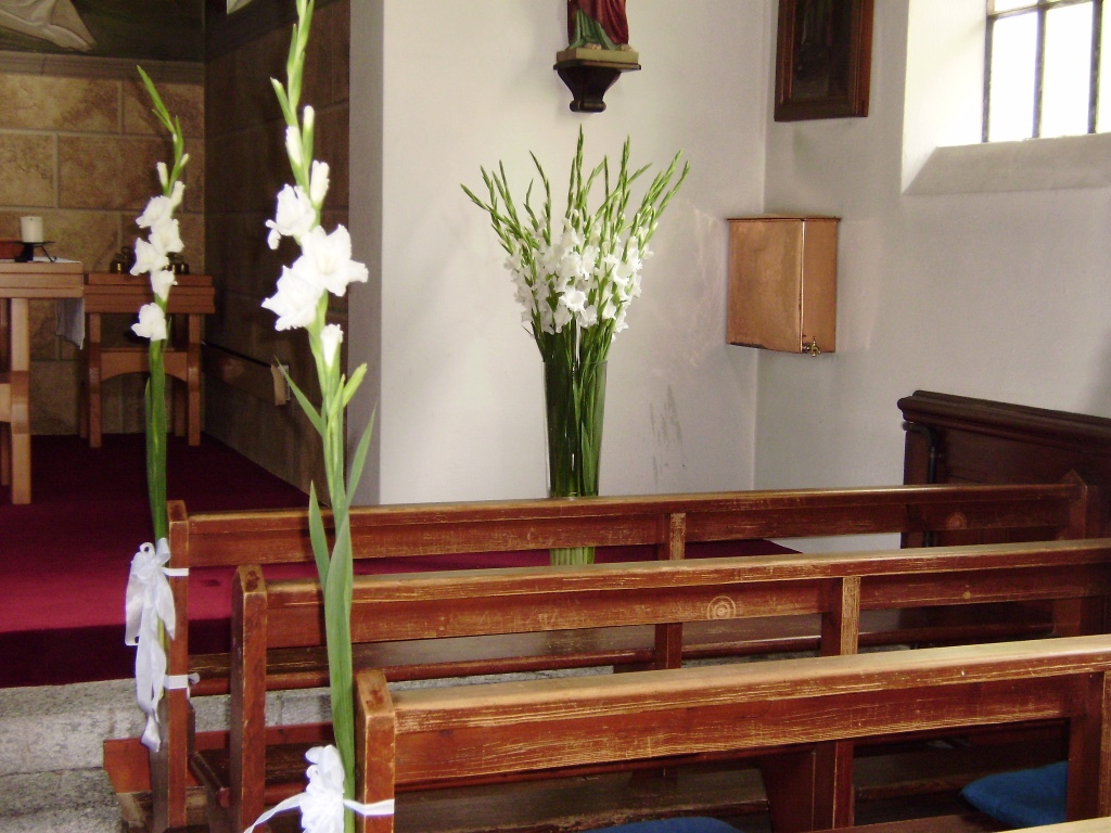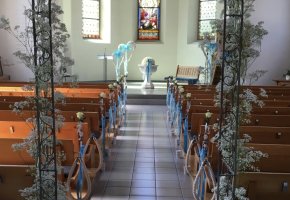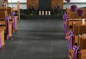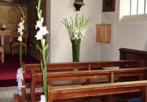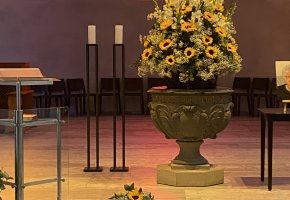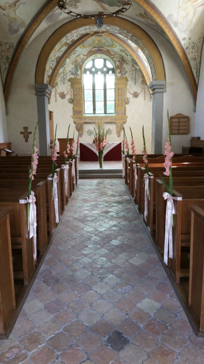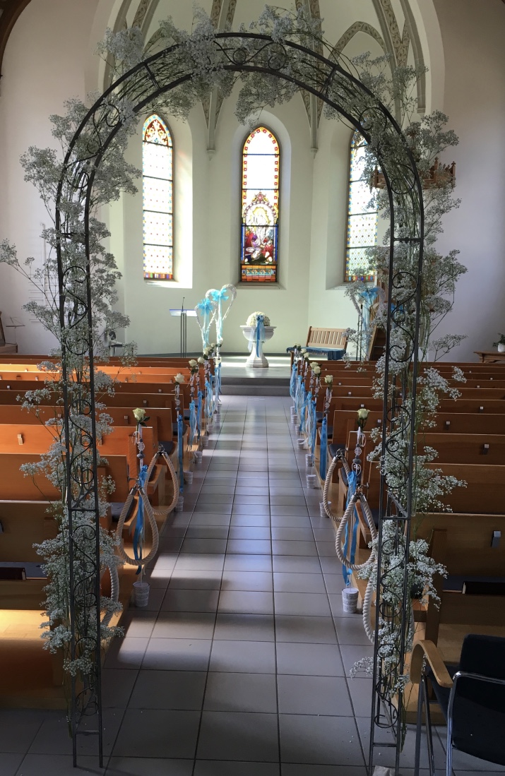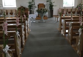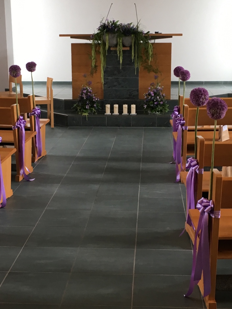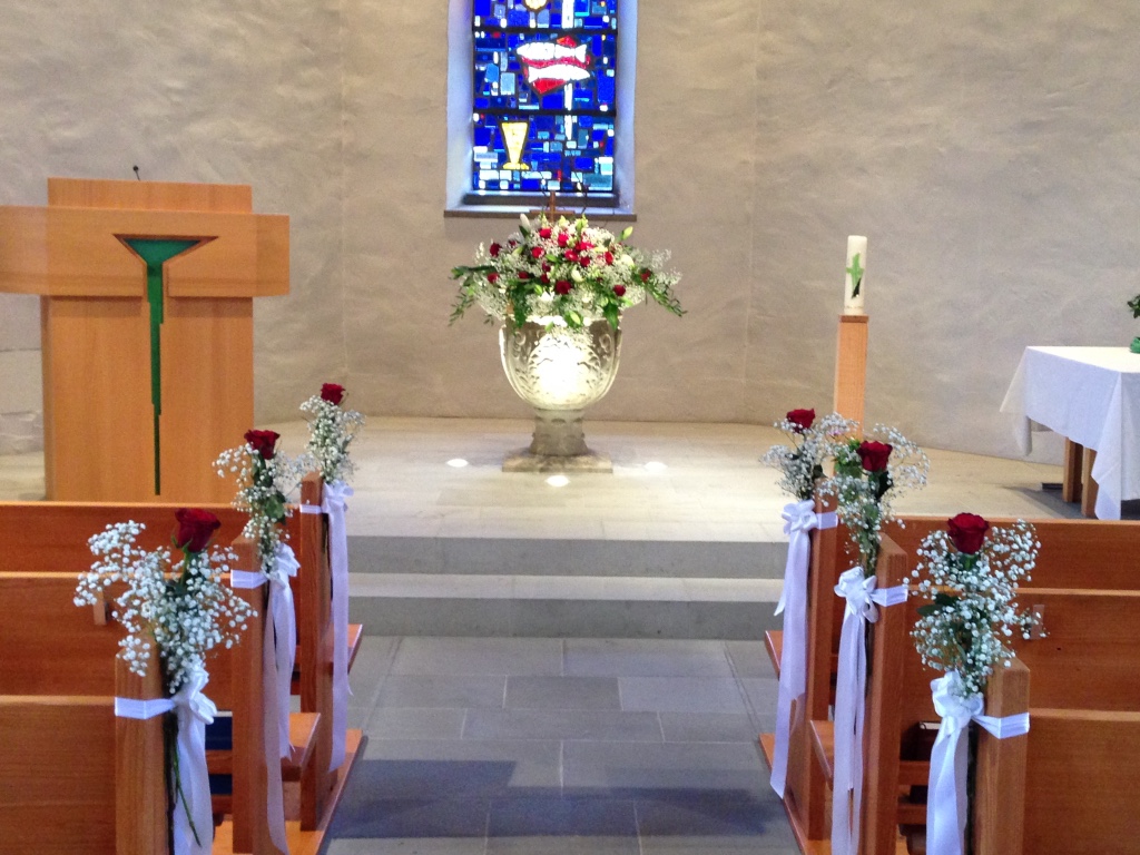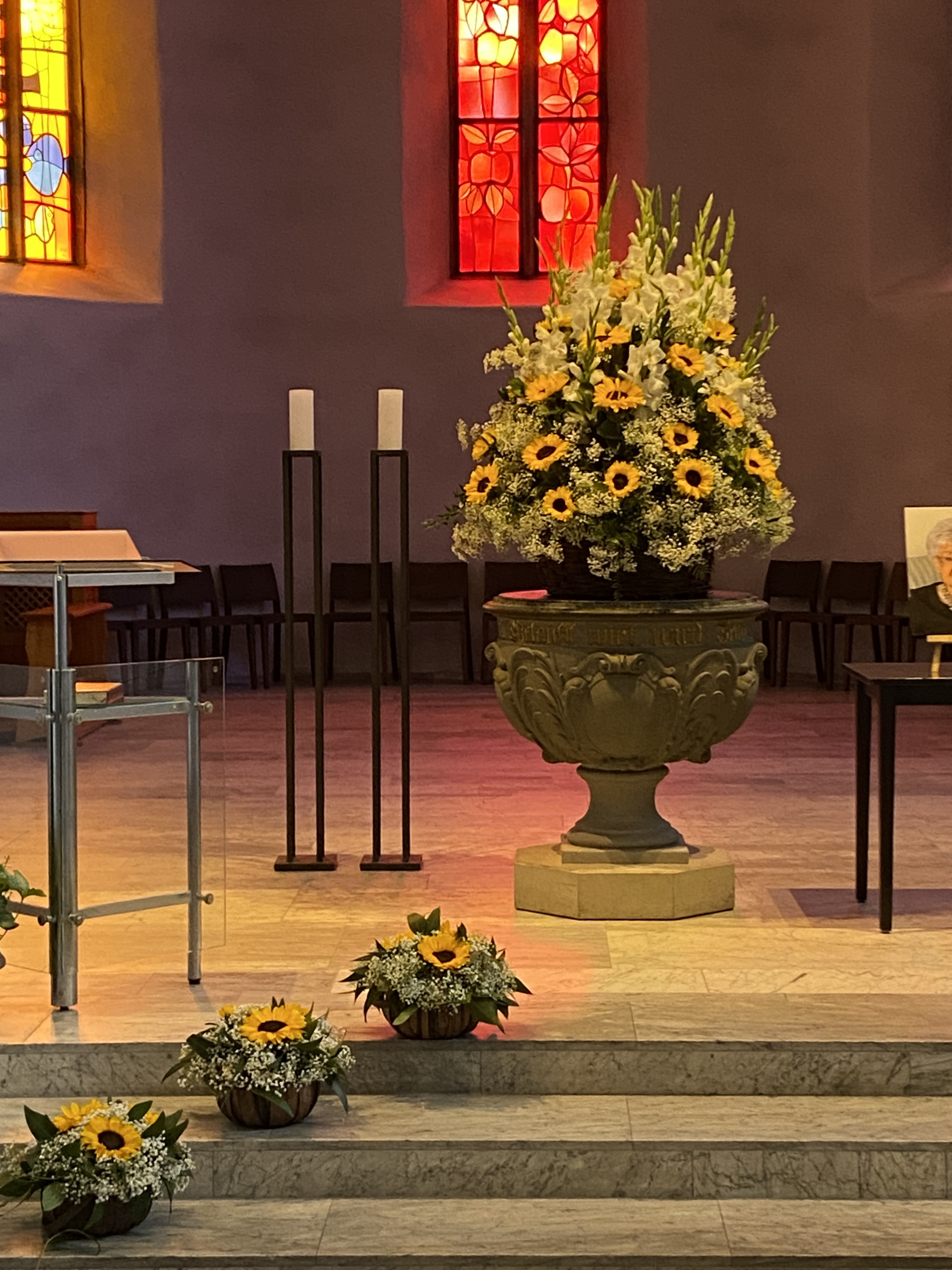 Ein Gesteck auf dem Taufstein, Banksträusse oder einzelne Blumen in der Kirche heissen Ihre Gäste Willkommen.