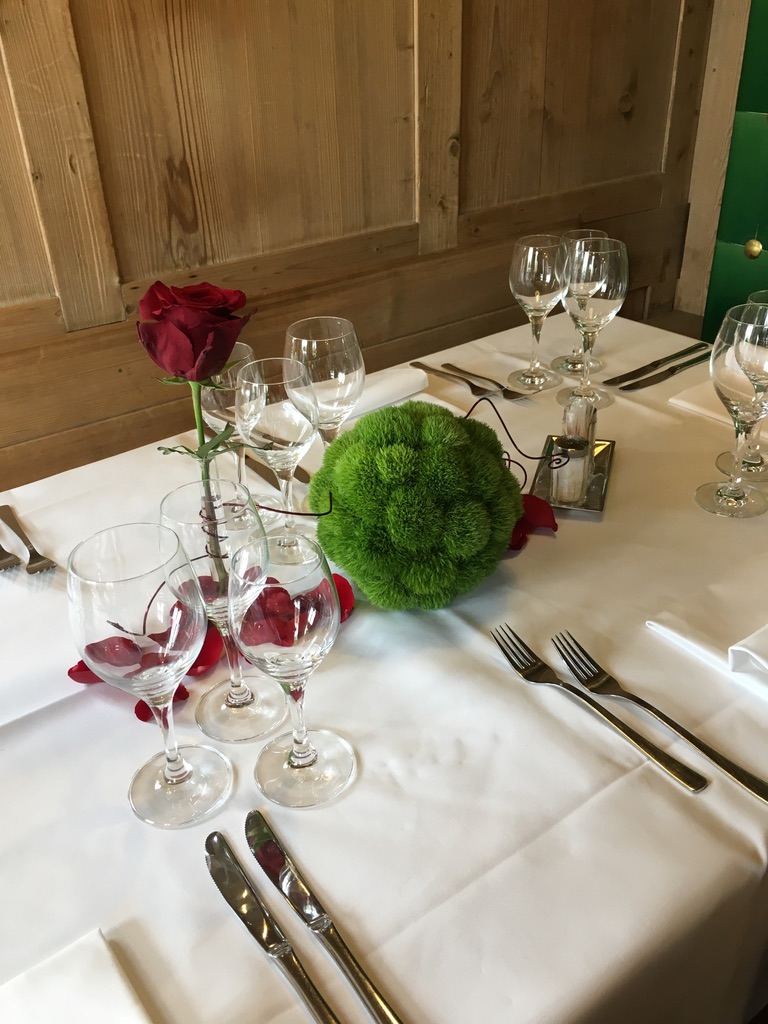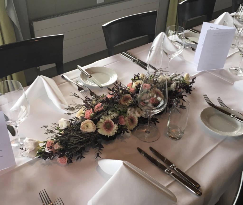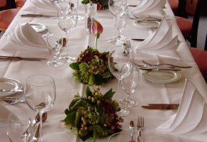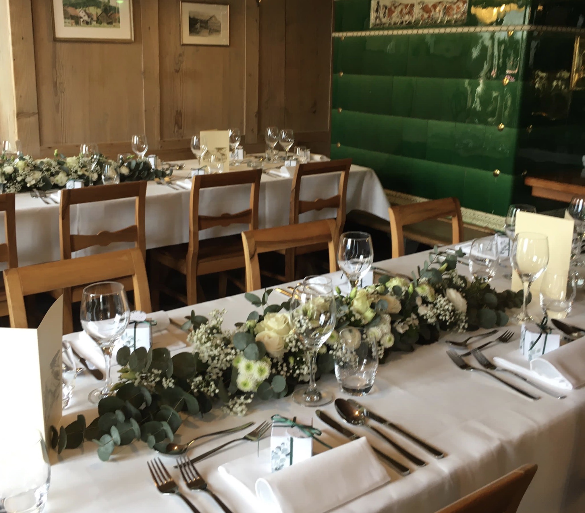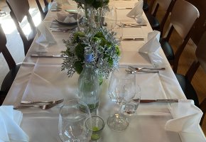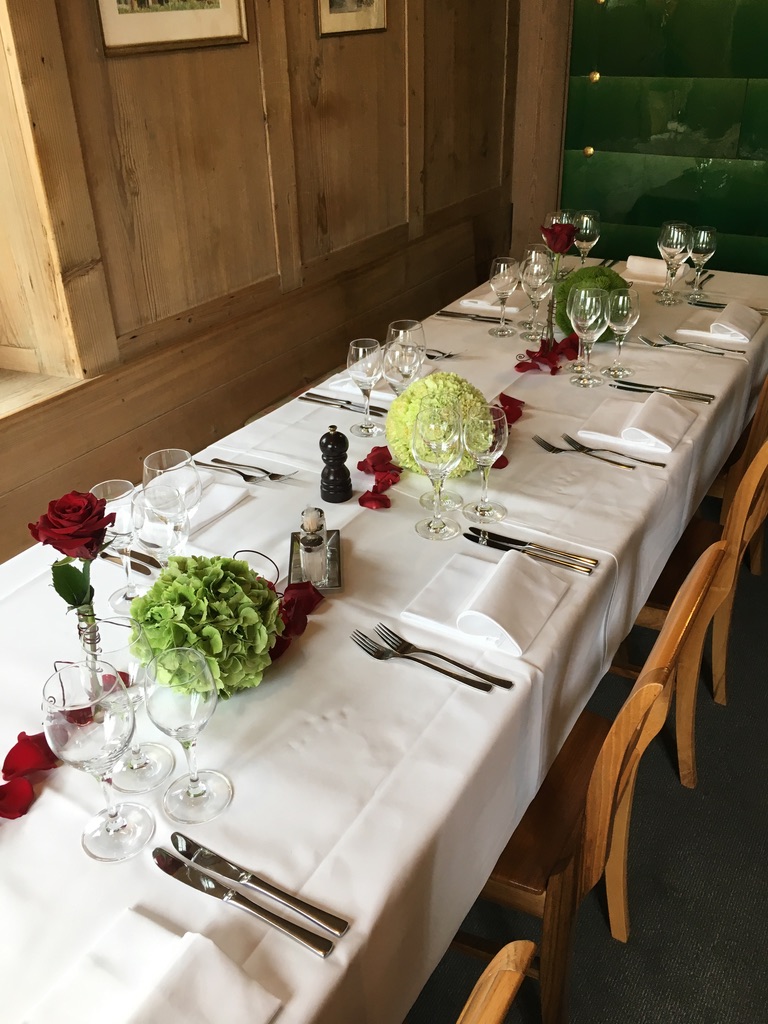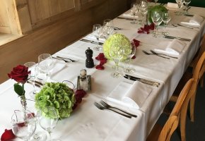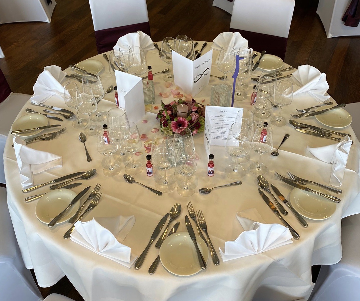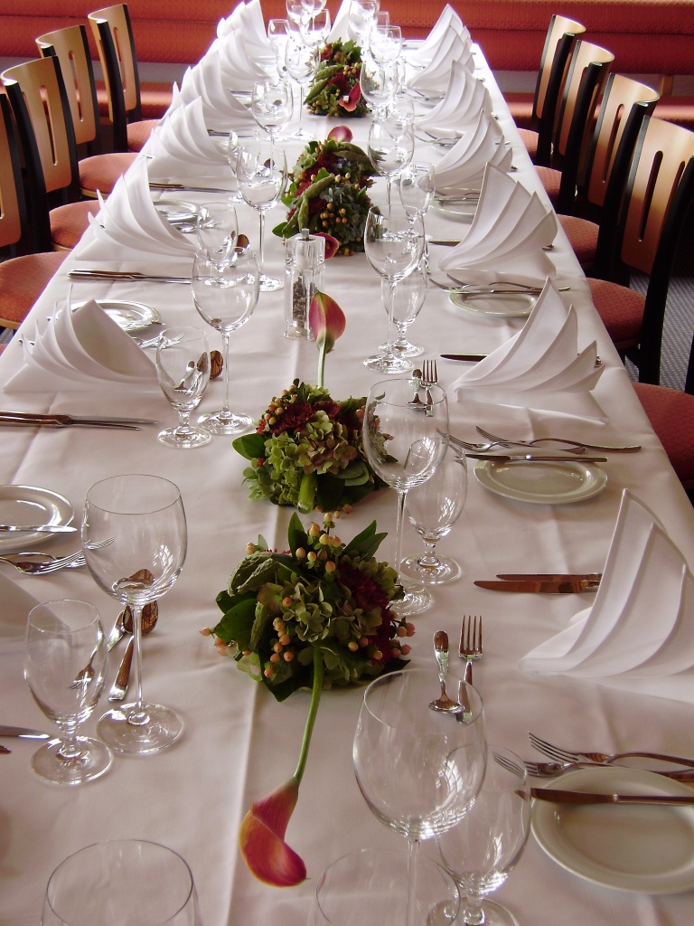 Und schliesslich die festliche Tischdekoration im Restaurant oder Saal ganz nach Ihrem Geschmack.