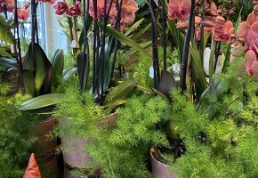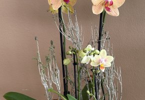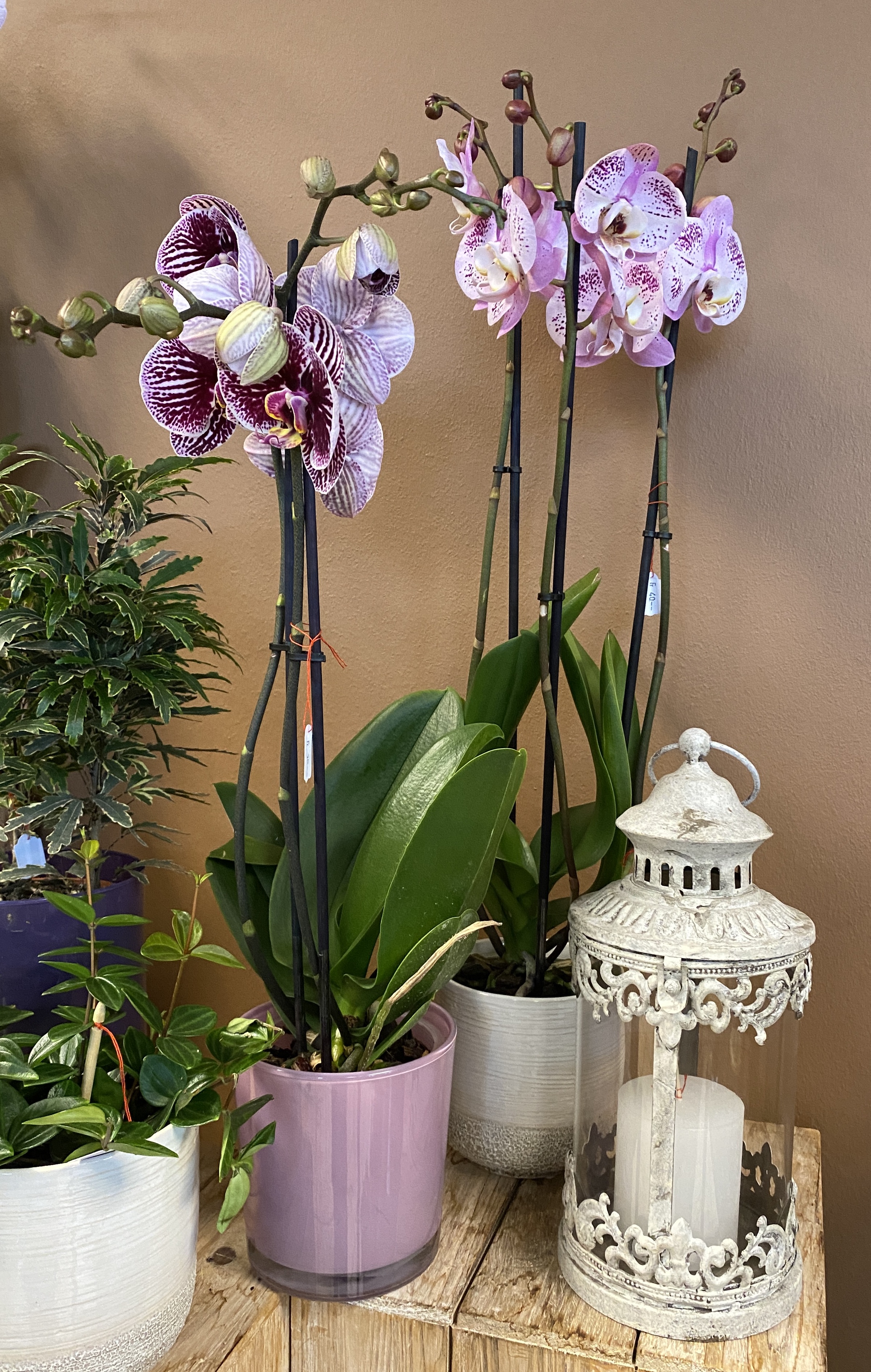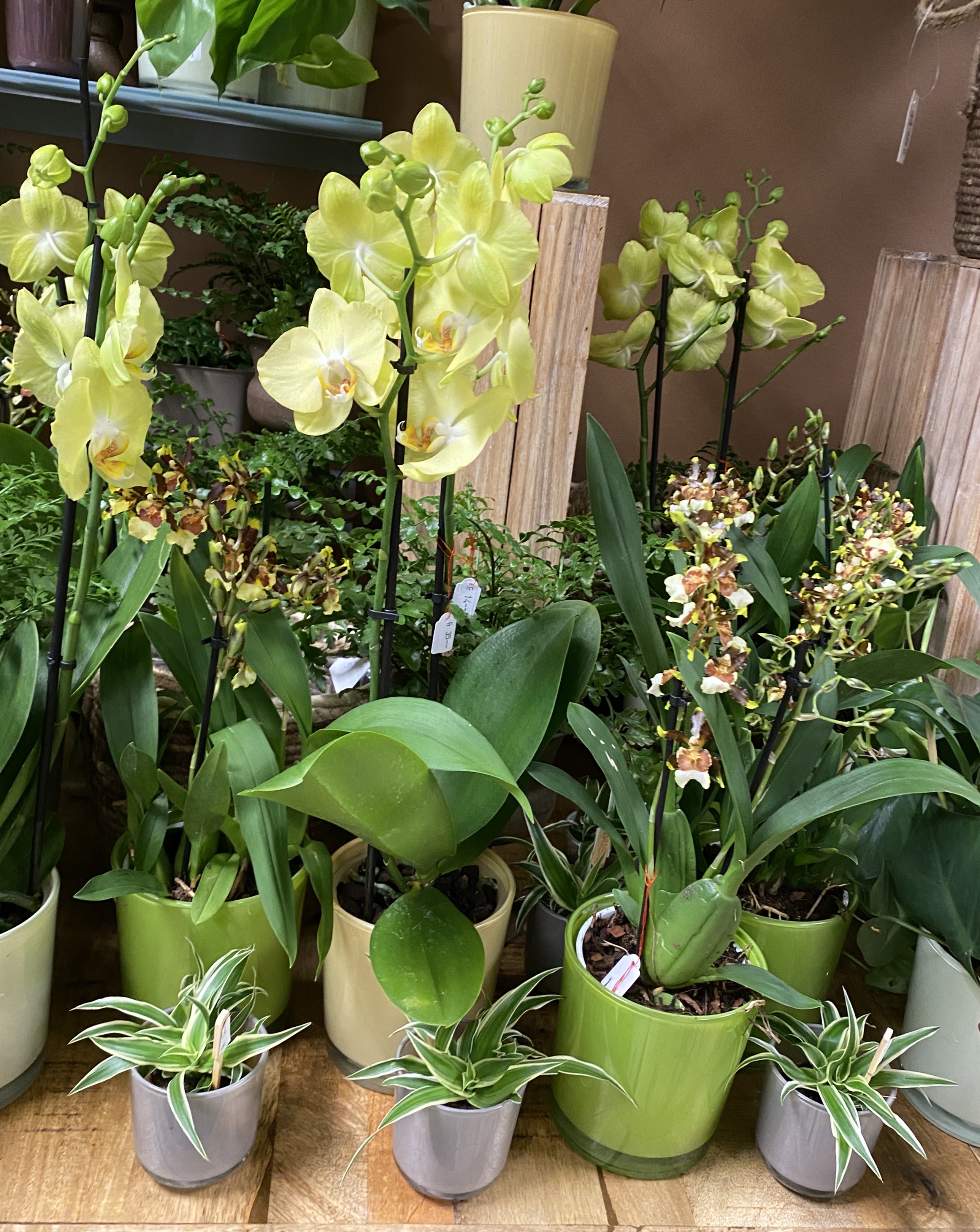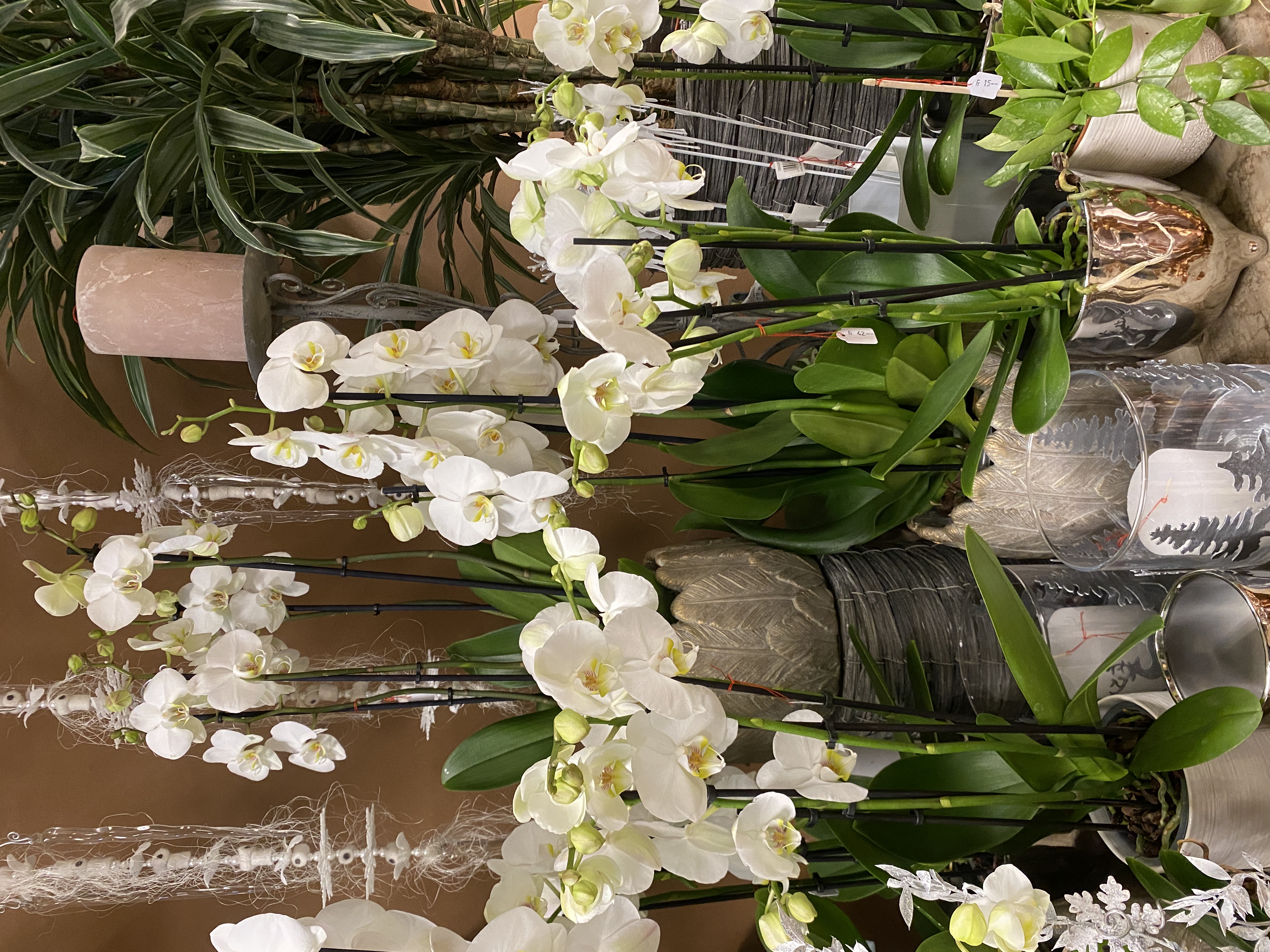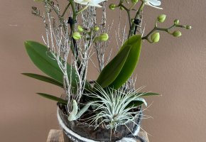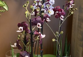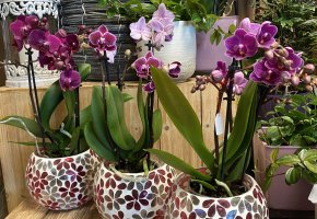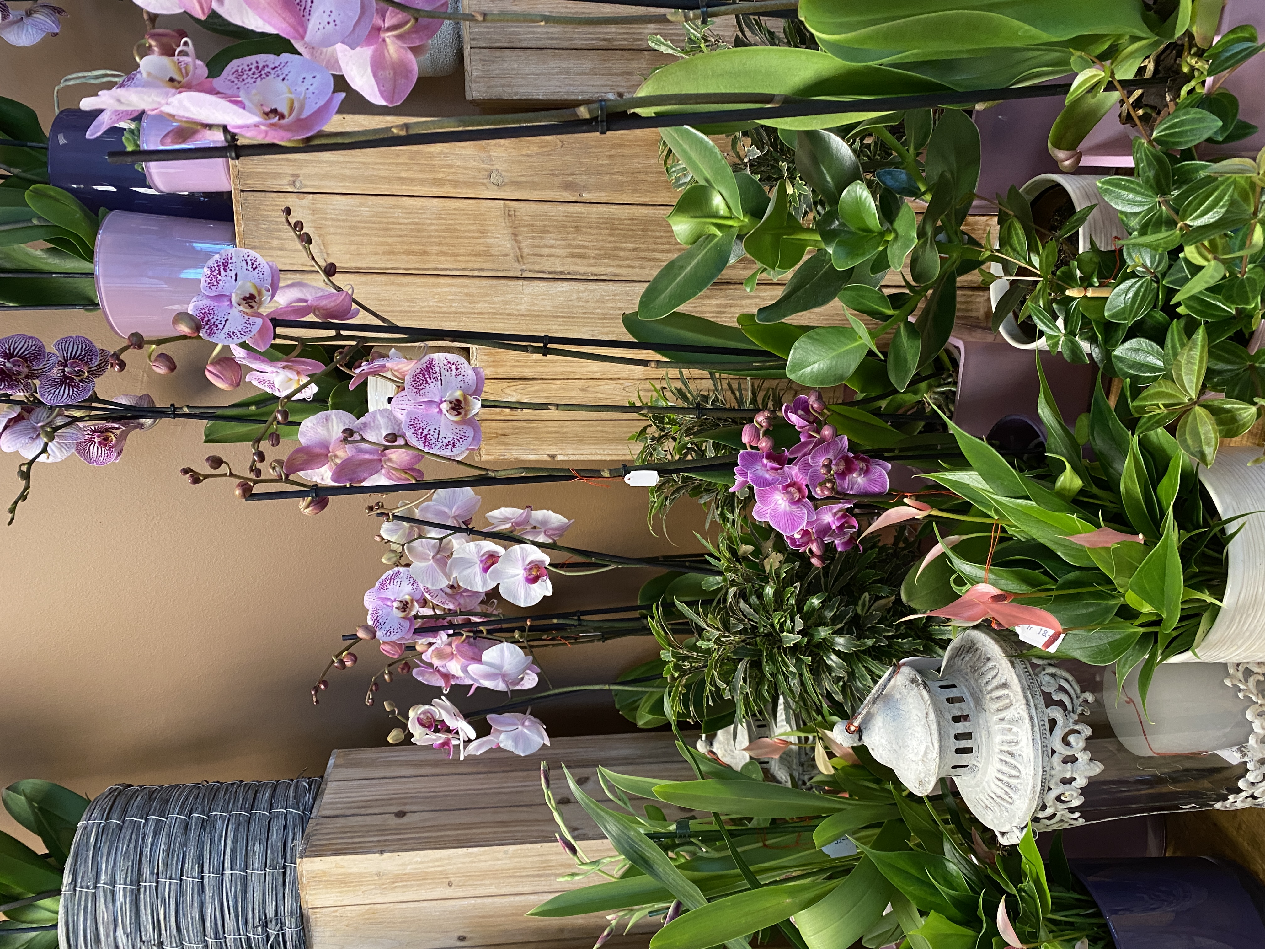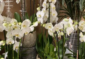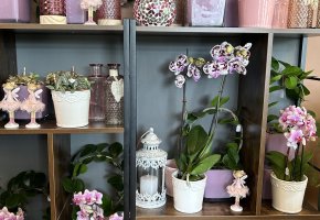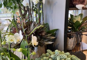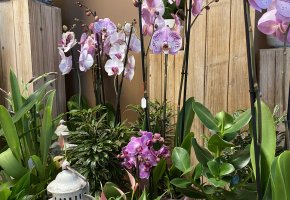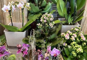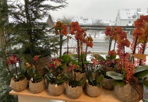 Orchideen und grüne oder blühende Zimmerpflanzen in diversen Grössen und Arten finden Sie im Laden.