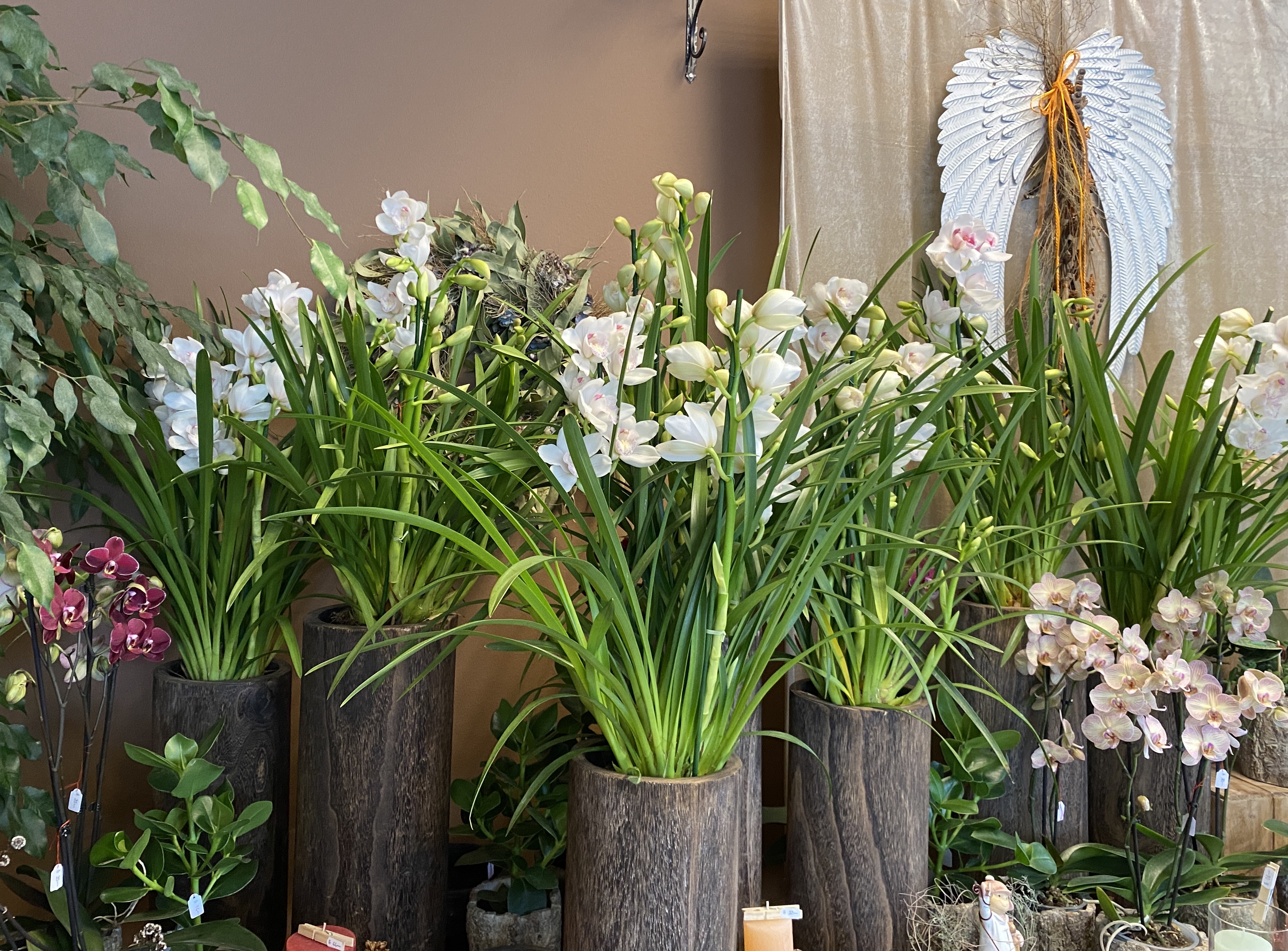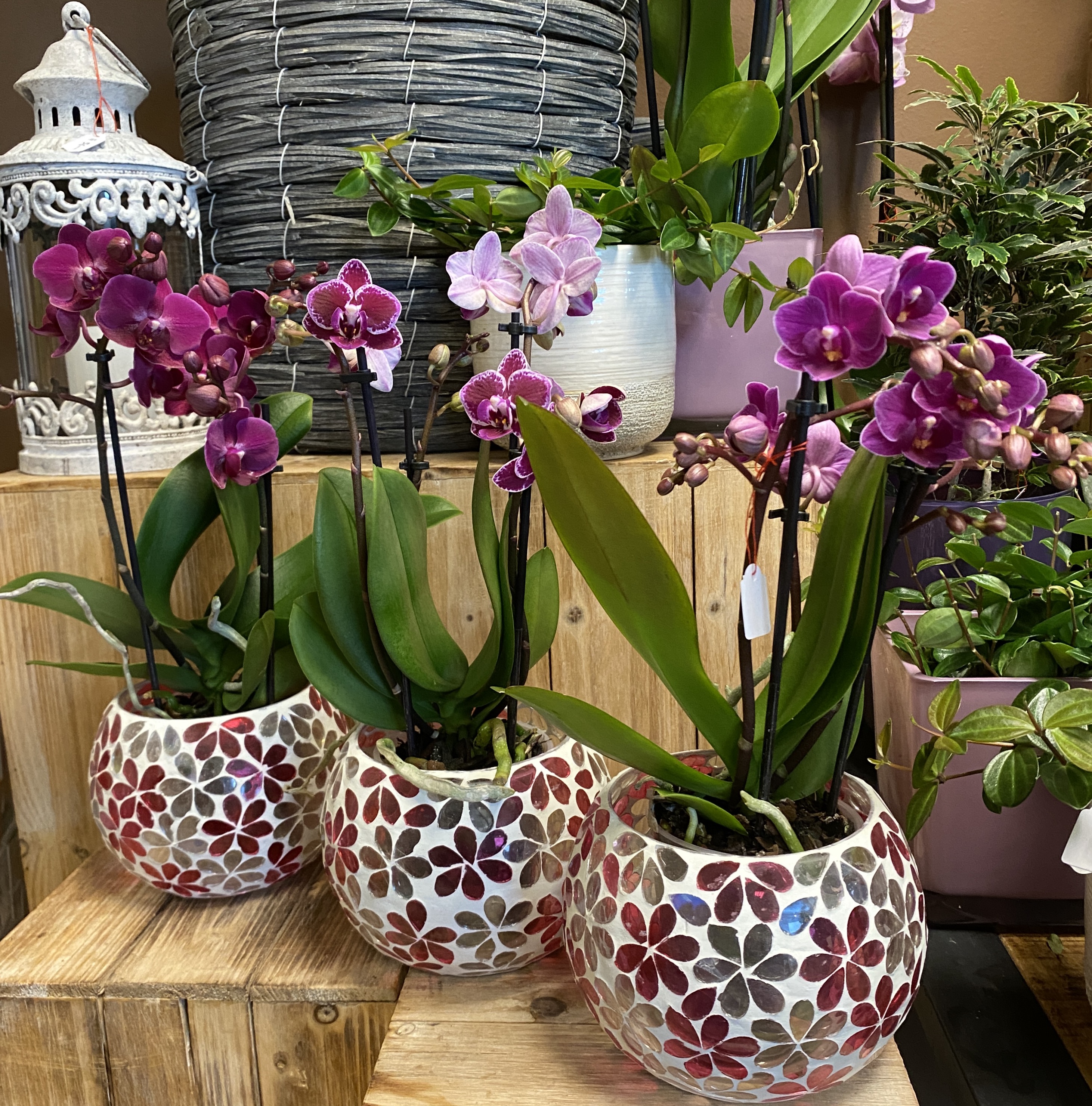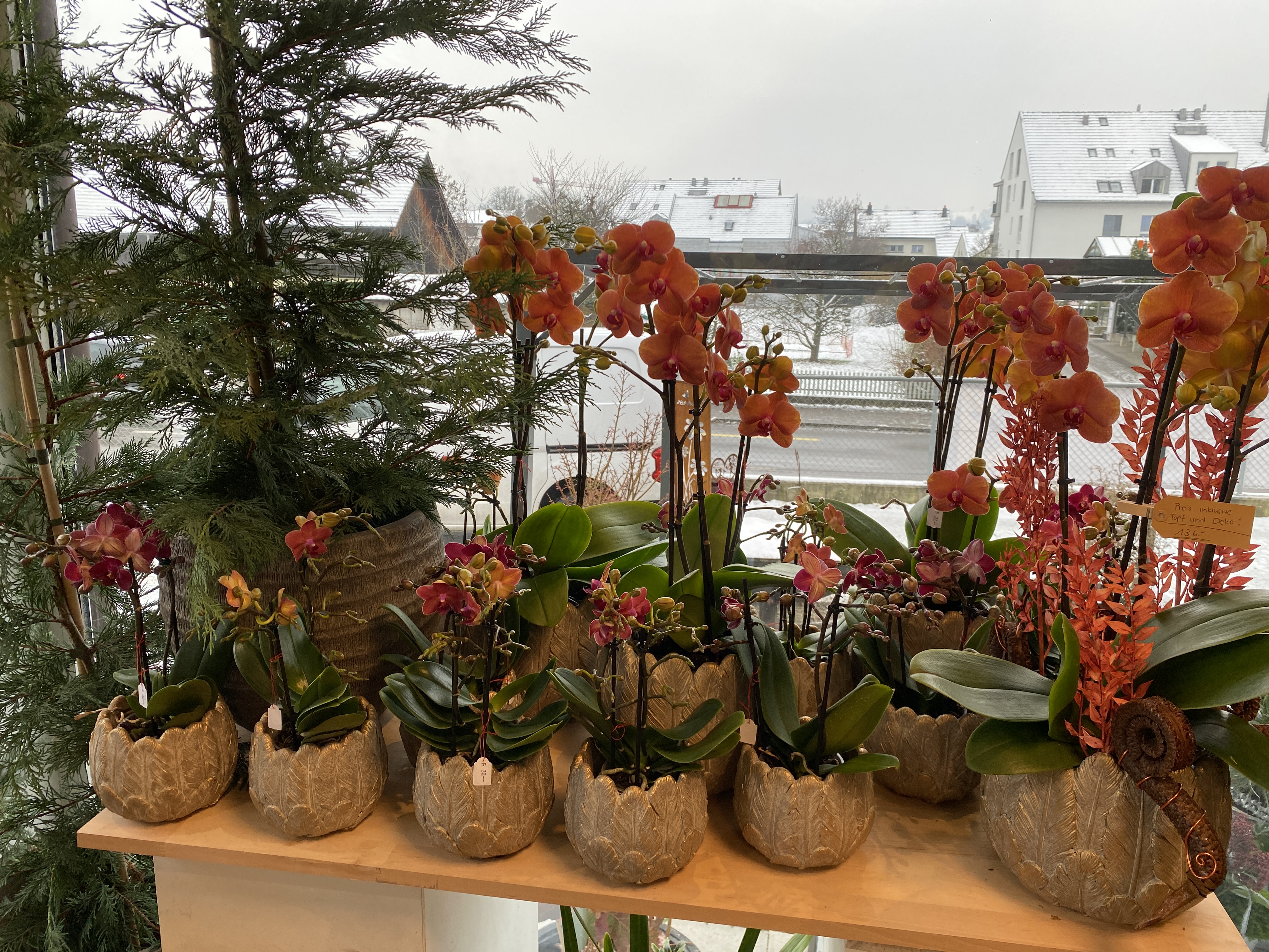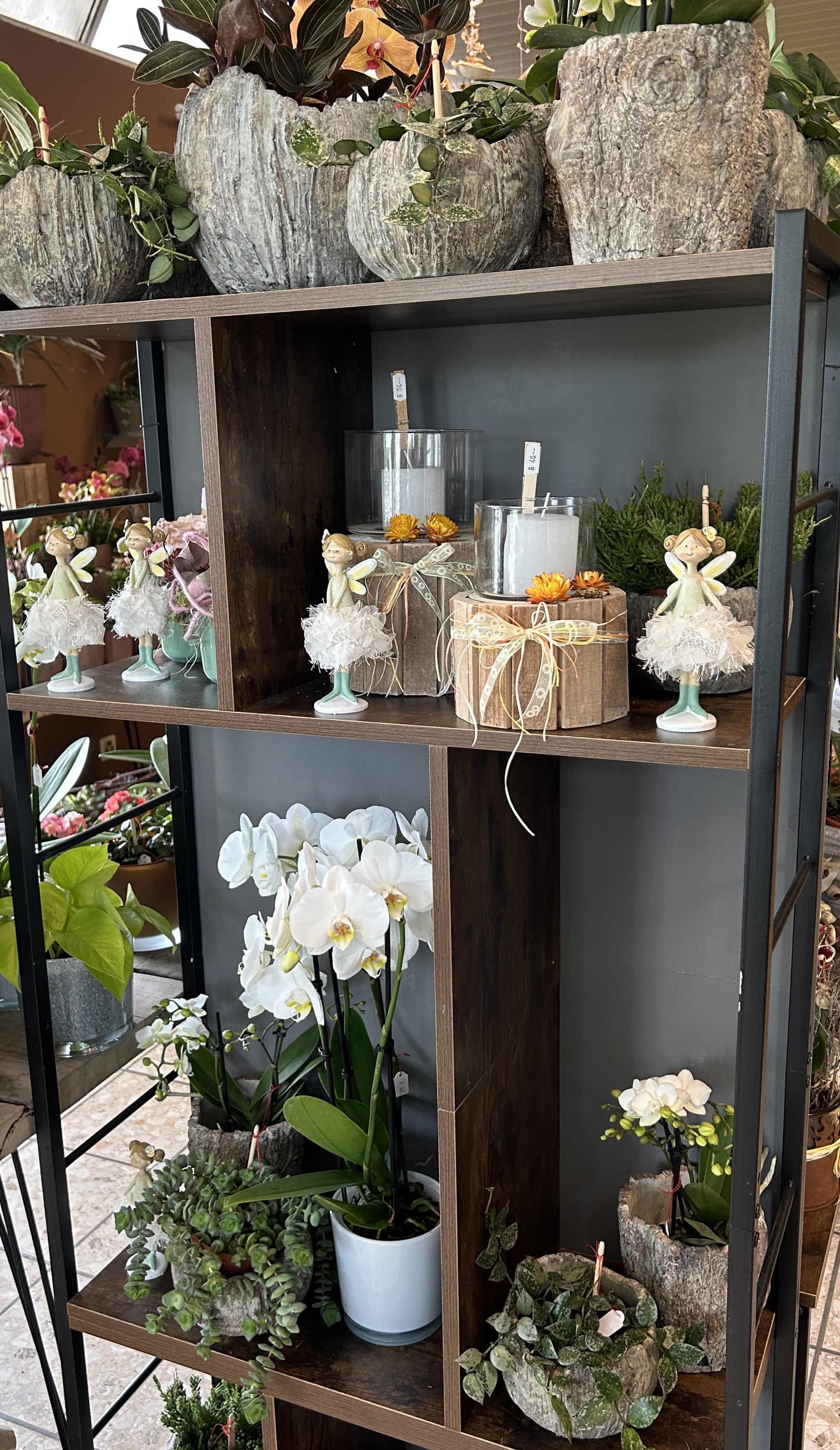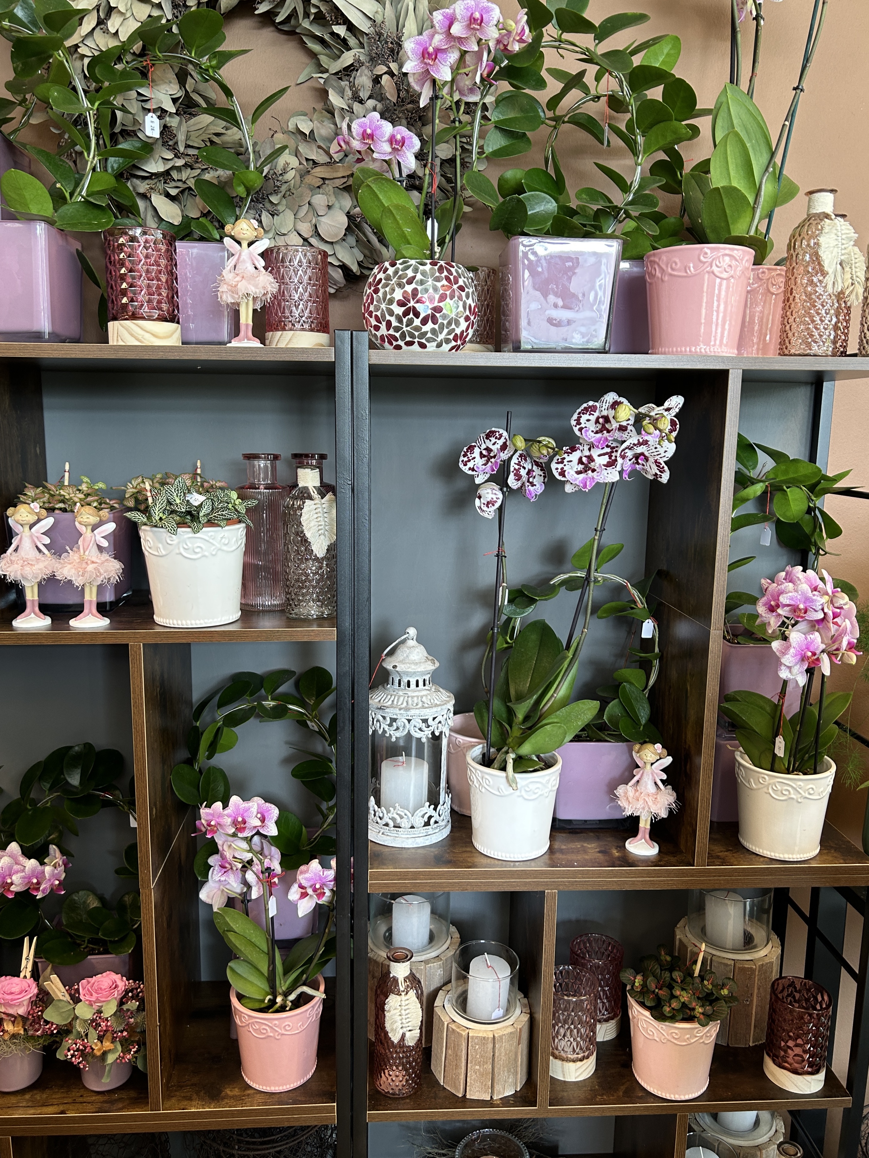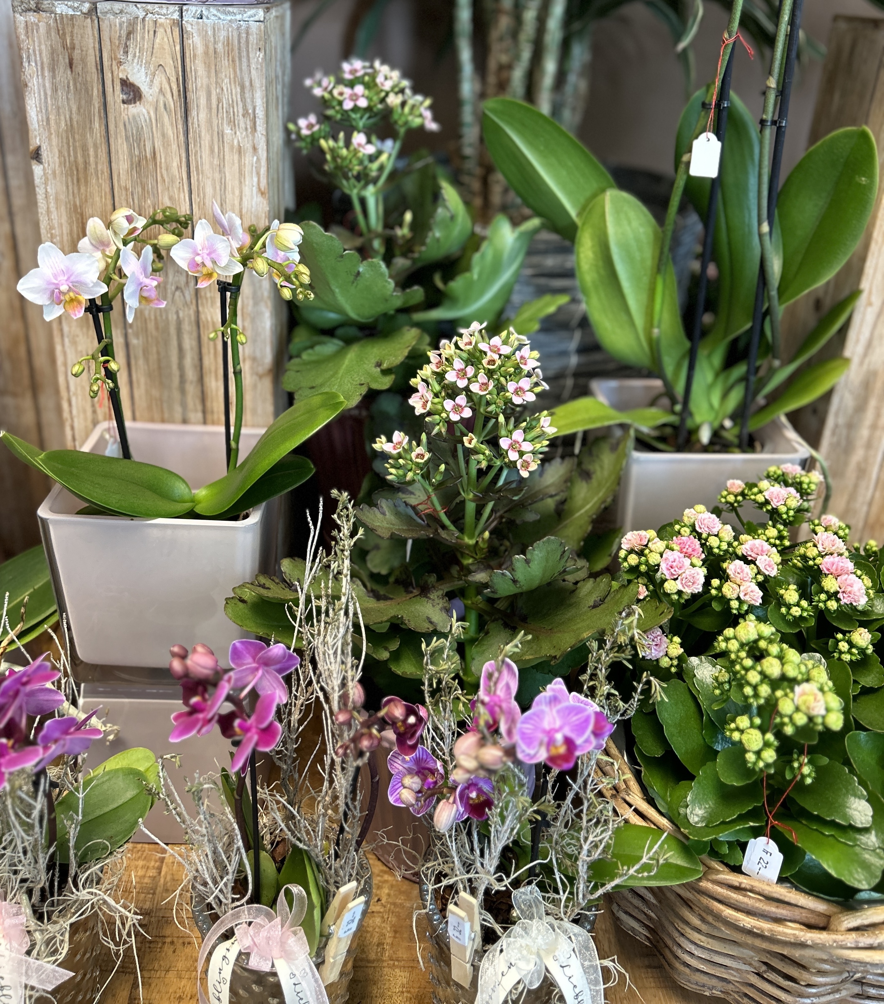 Orchideen und grüne oder blühende Zimmerpflanzen in diversen Grössen und Arten finden Sie im Laden.