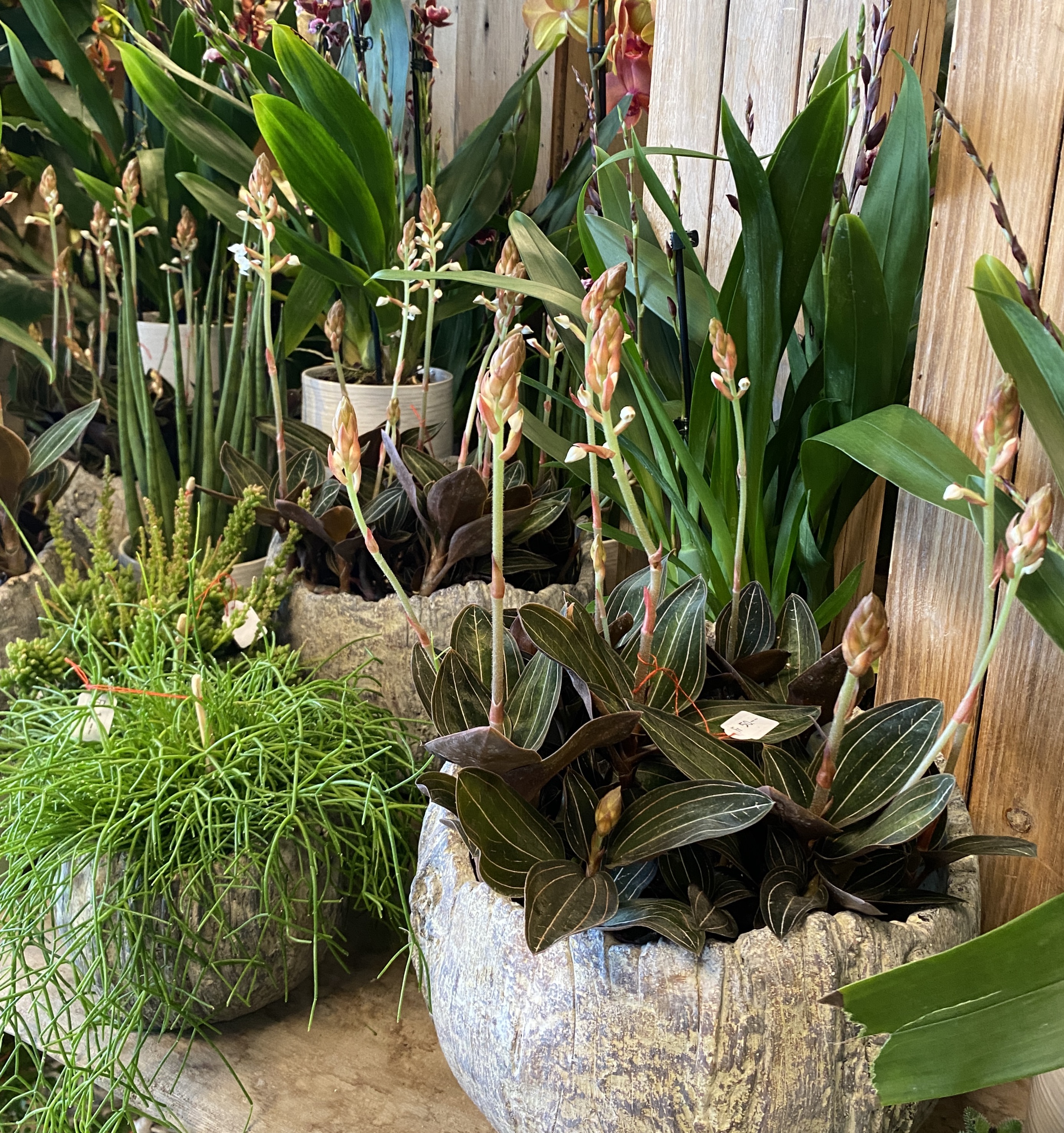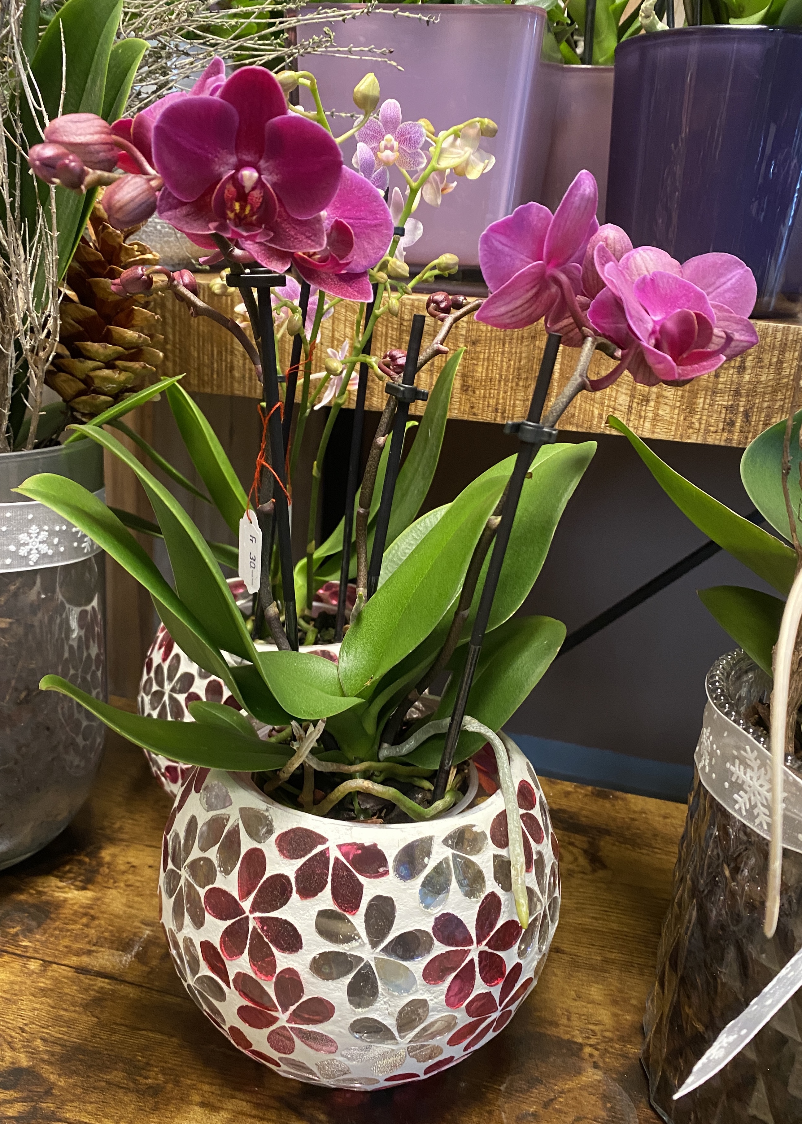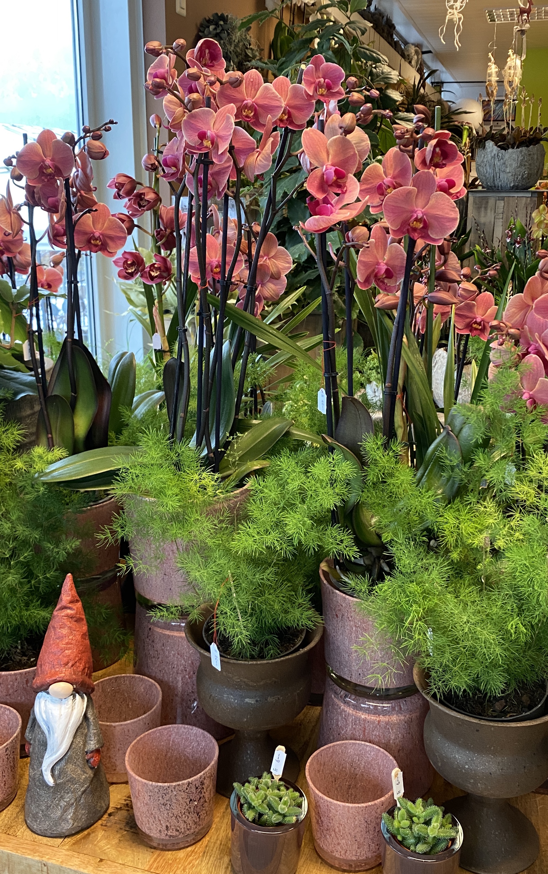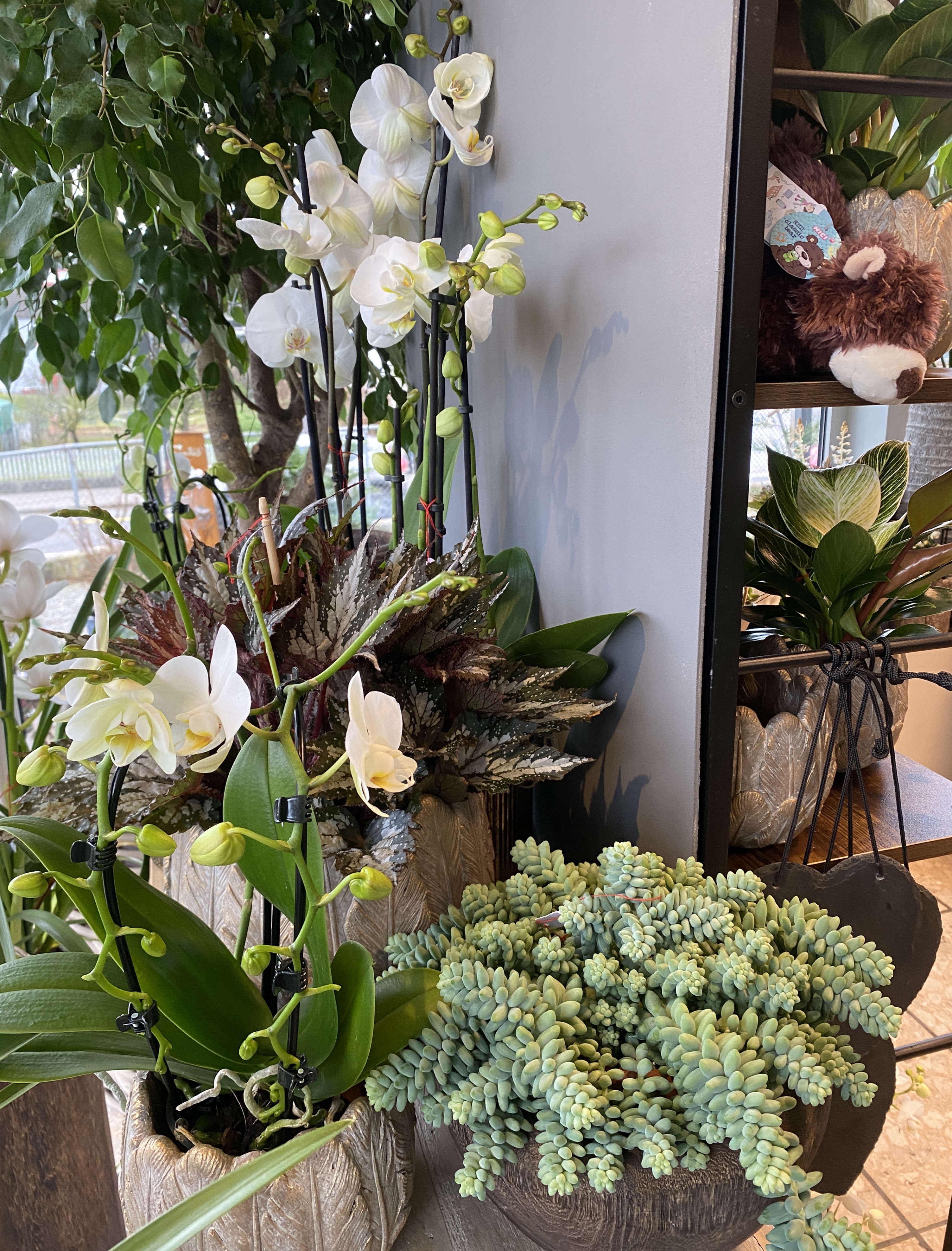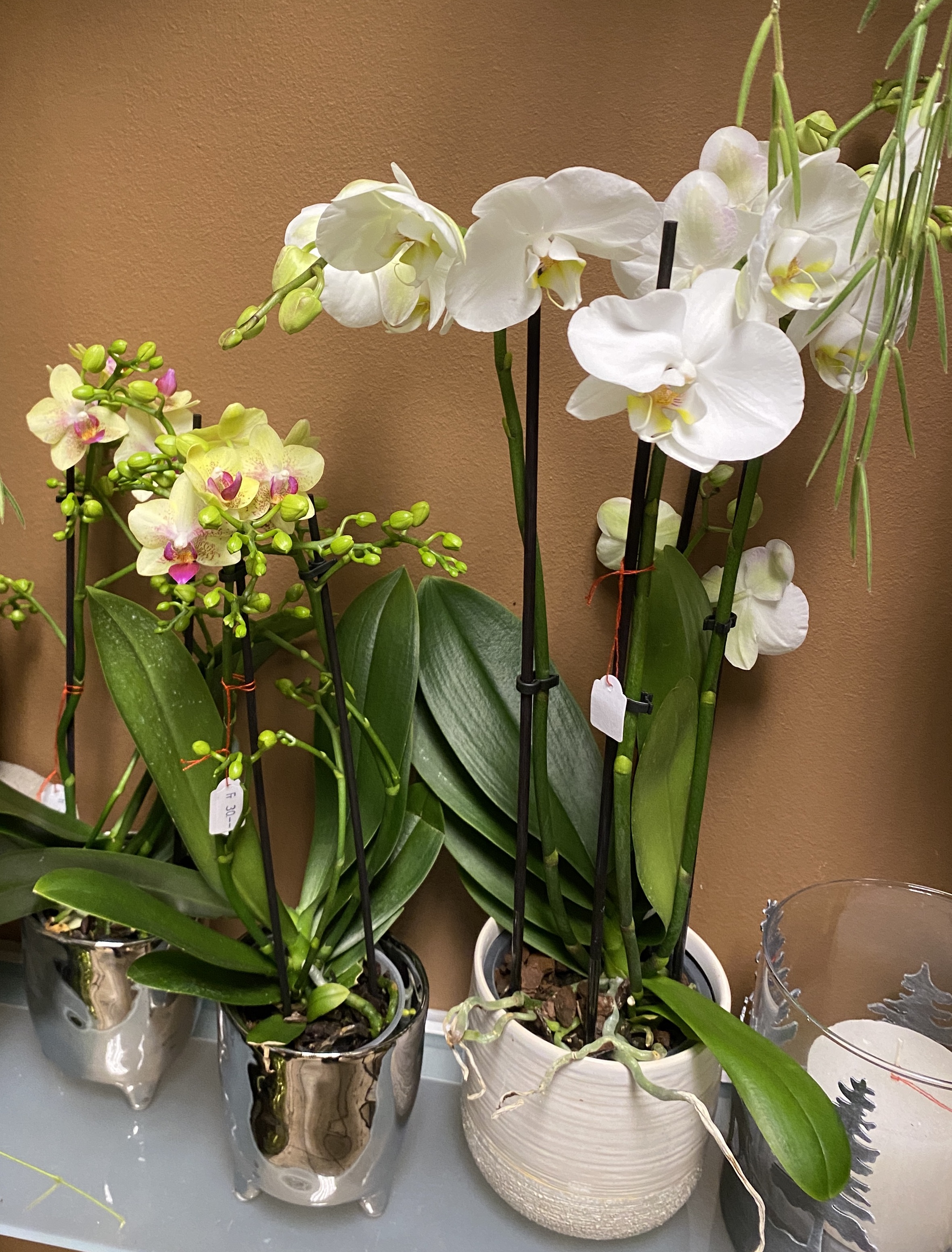Orchideen und grüne oder blühende Zimmerpflanzen in diversen Grössen und Arten finden Sie im Laden.