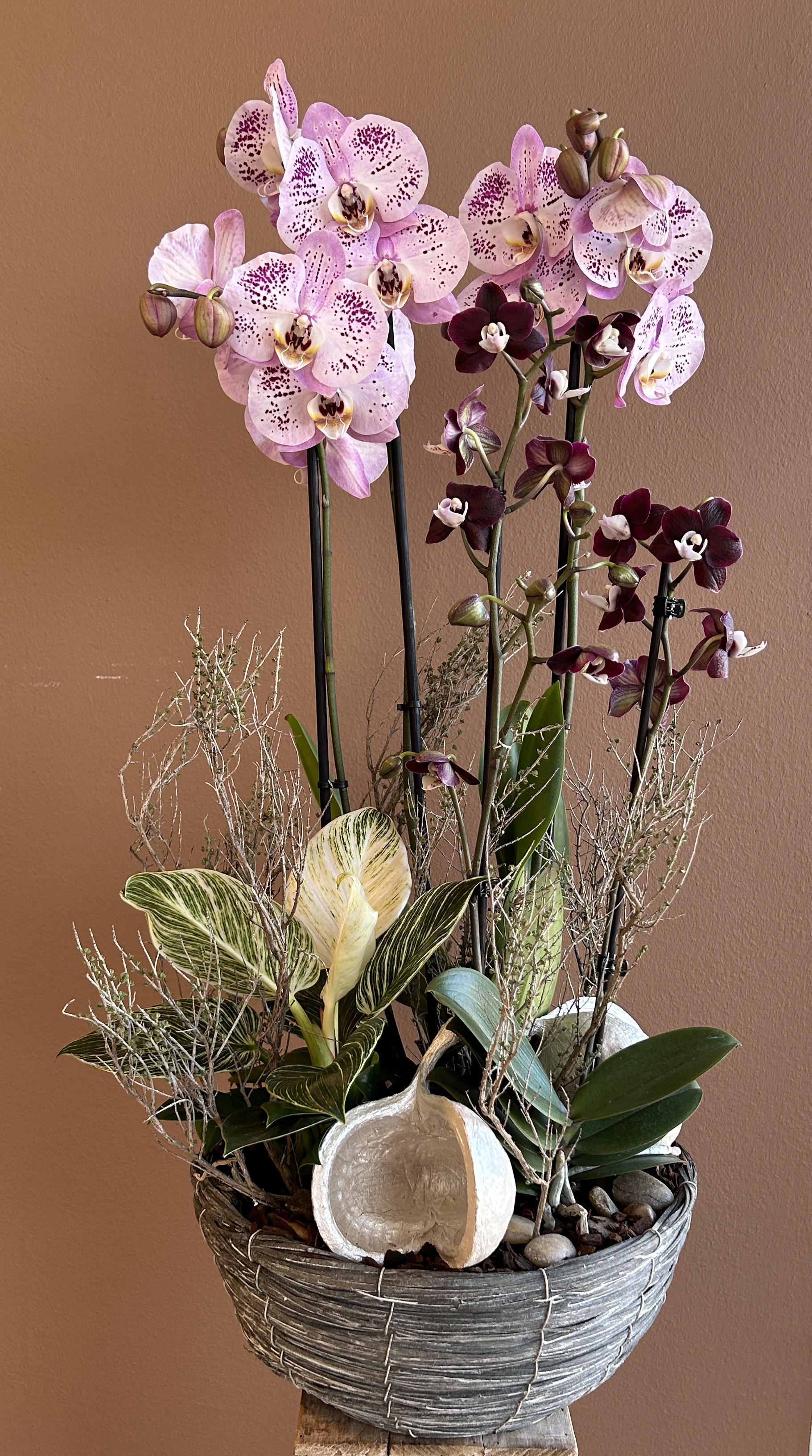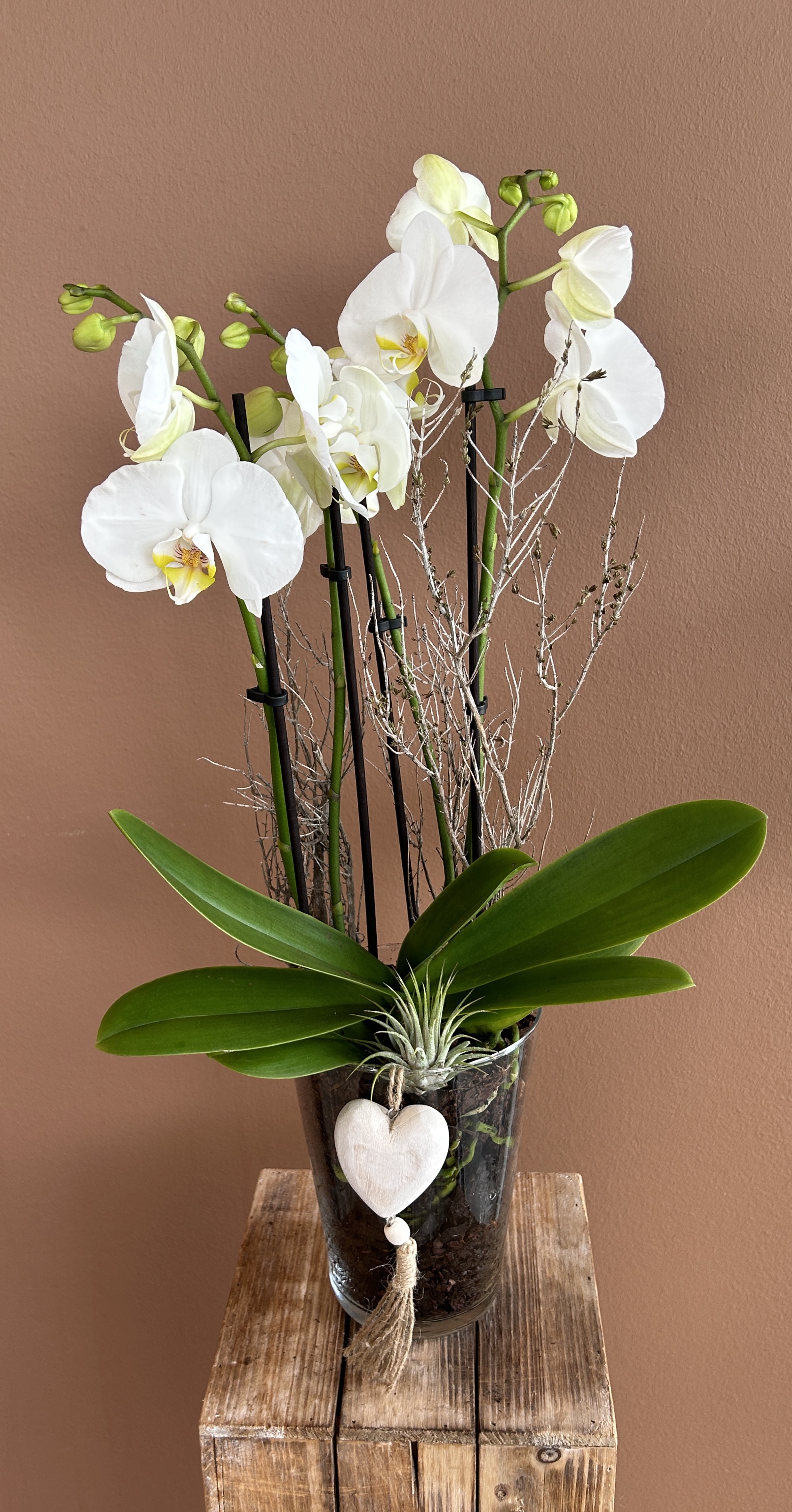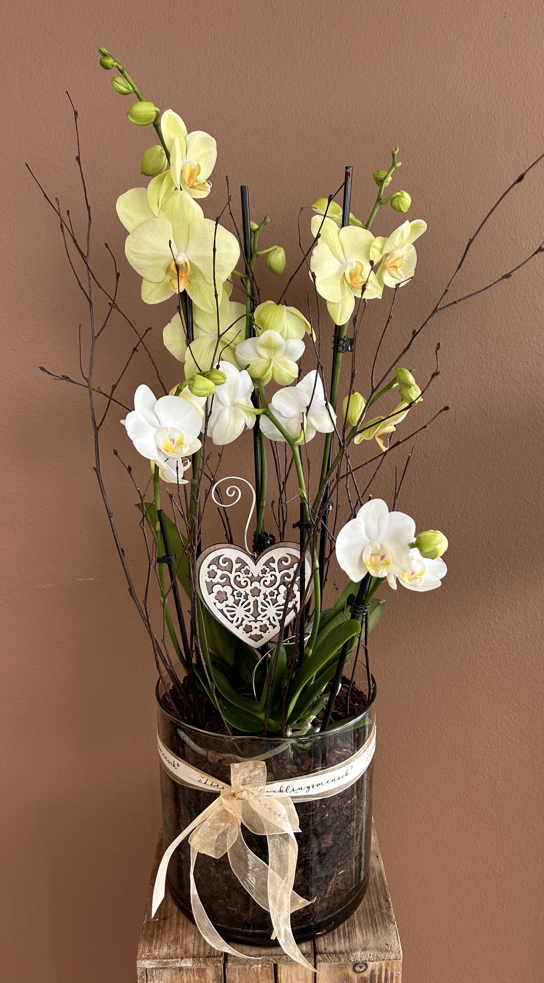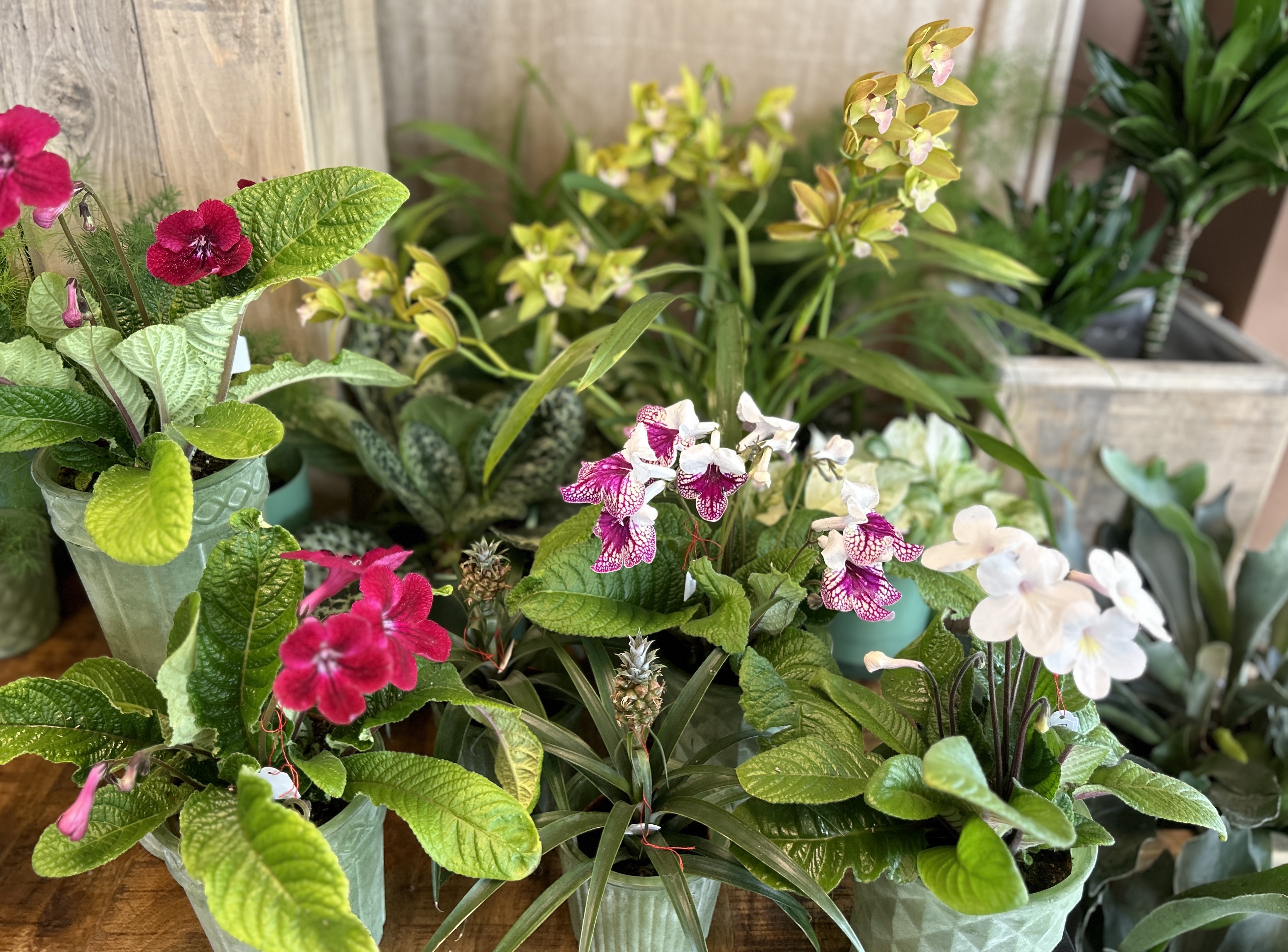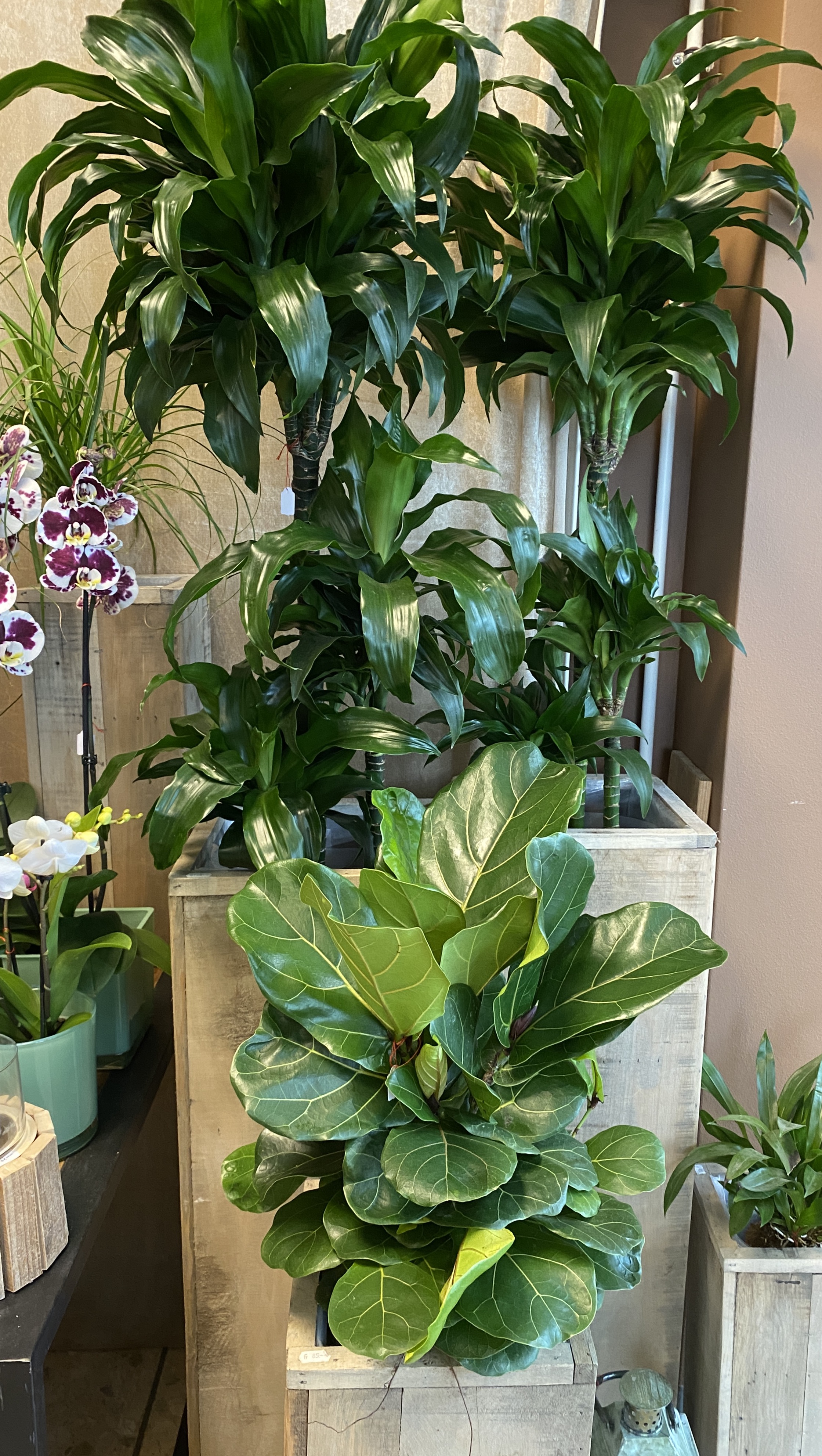 Orchideen und grüne oder blühende Zimmerpflanzen in diversen Grössen und Arten finden Sie im Laden.