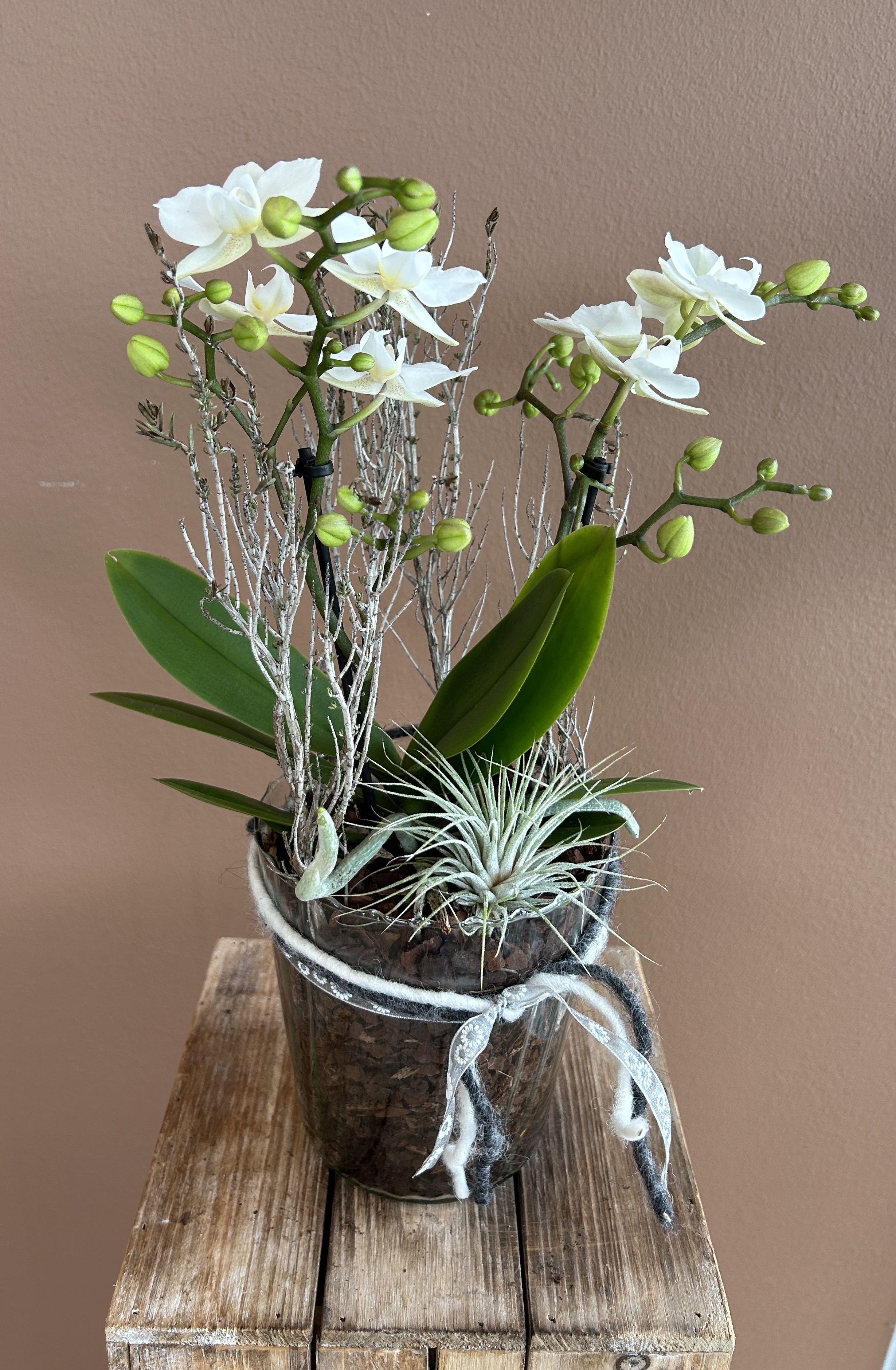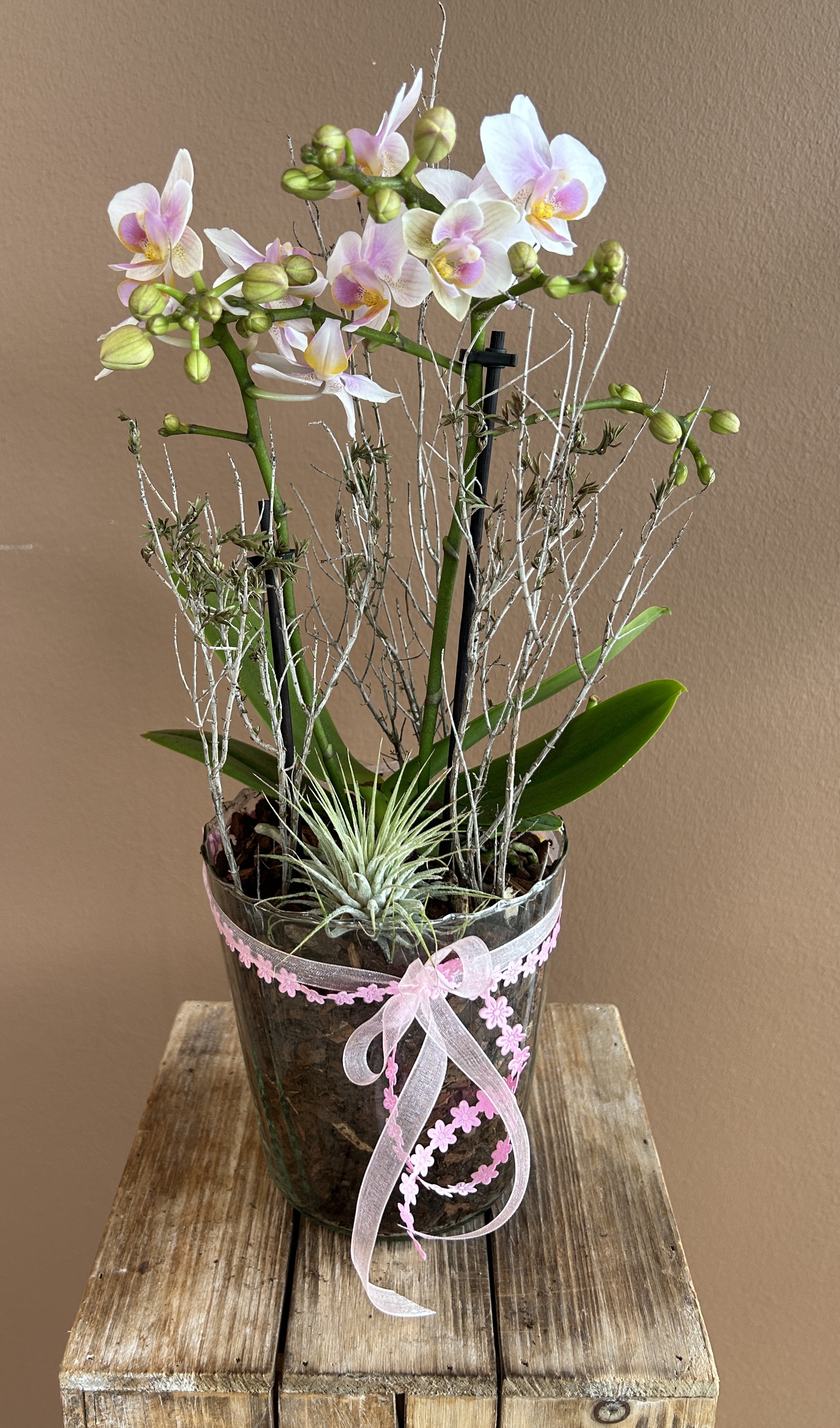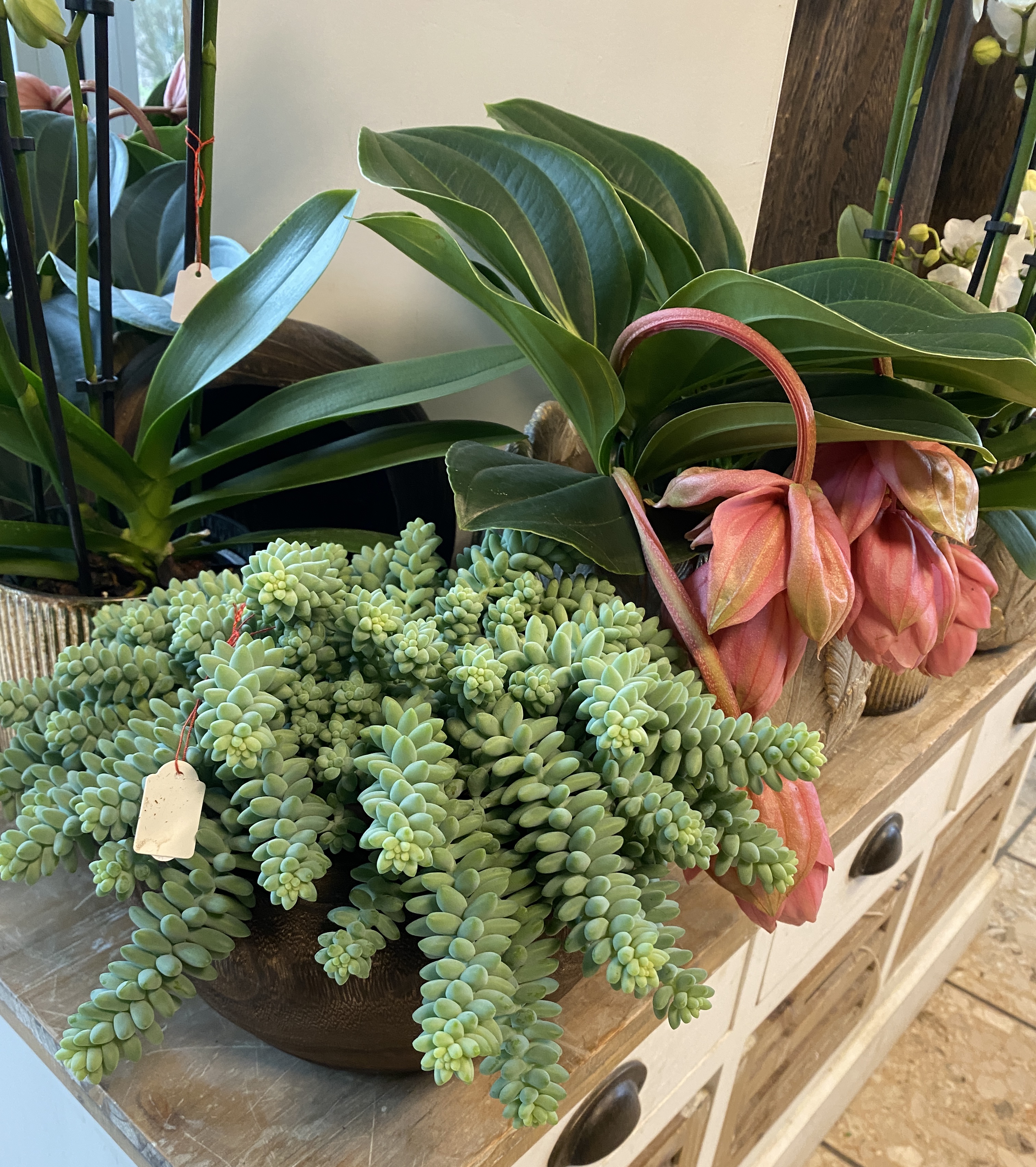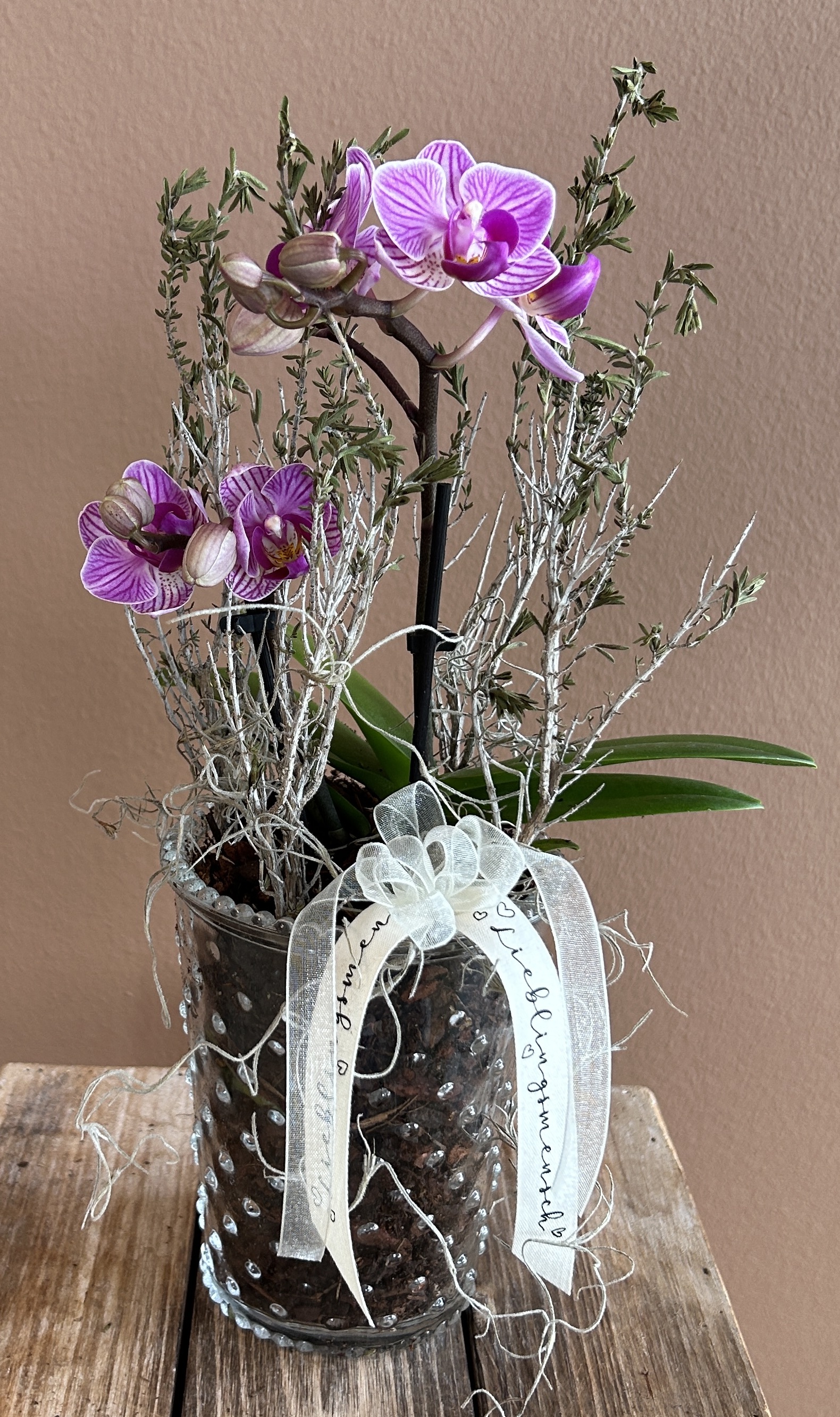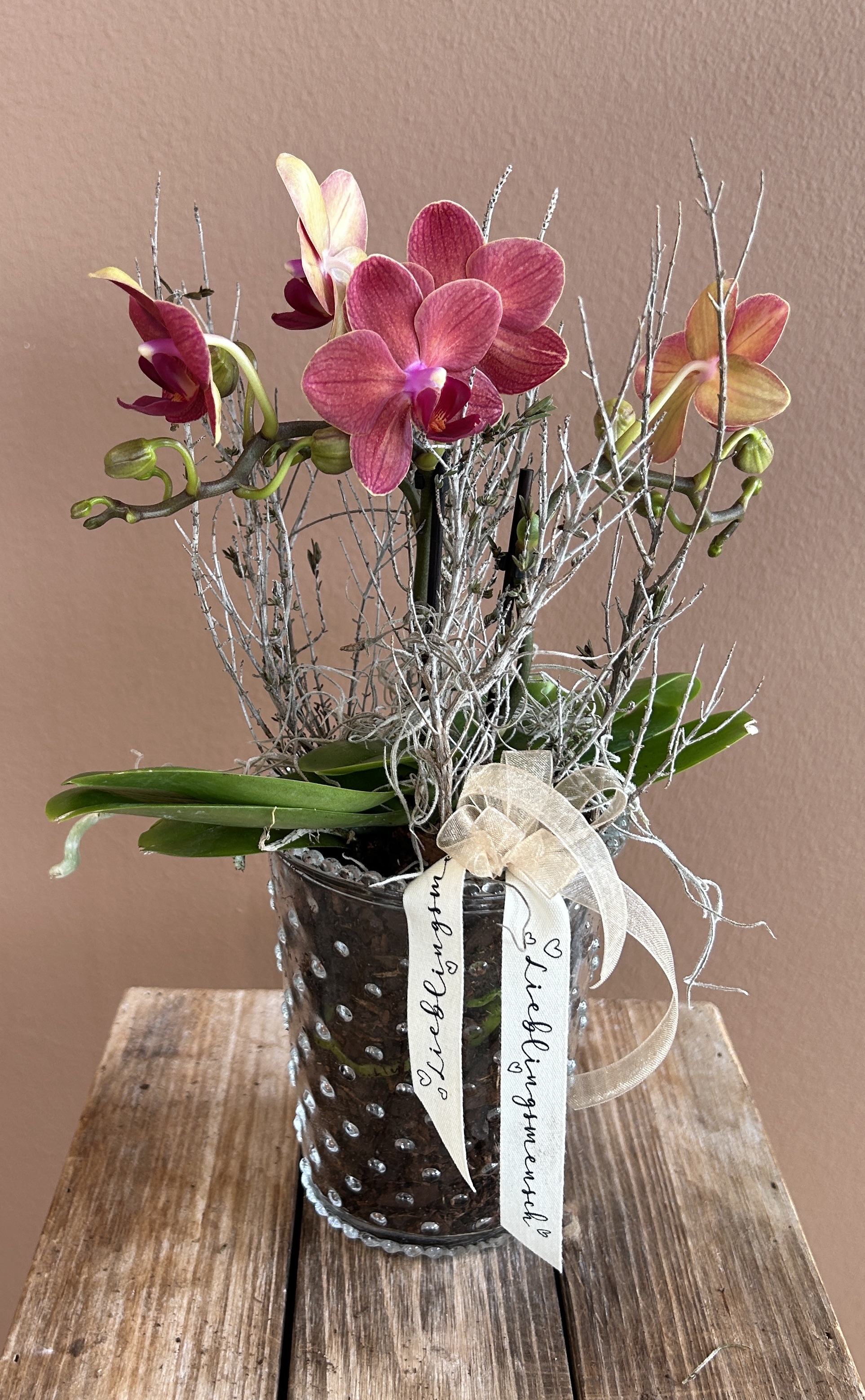 Orchideen und grüne oder blühende Zimmerpflanzen in diversen Grössen und Arten finden Sie im Laden.
