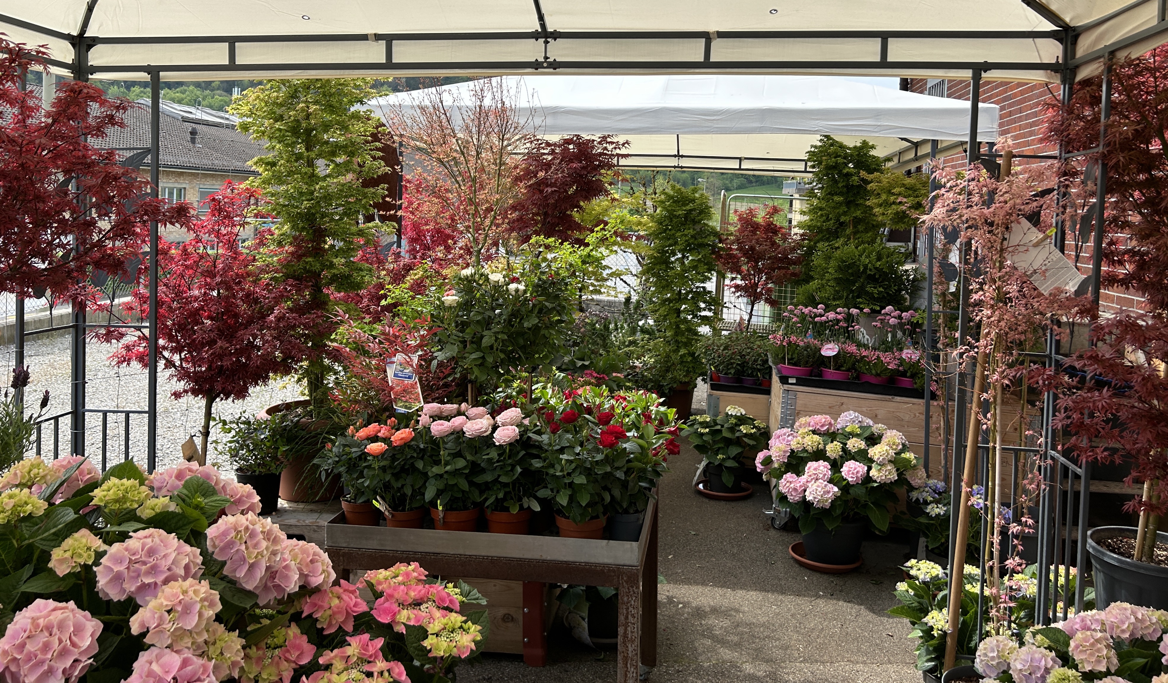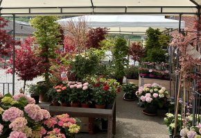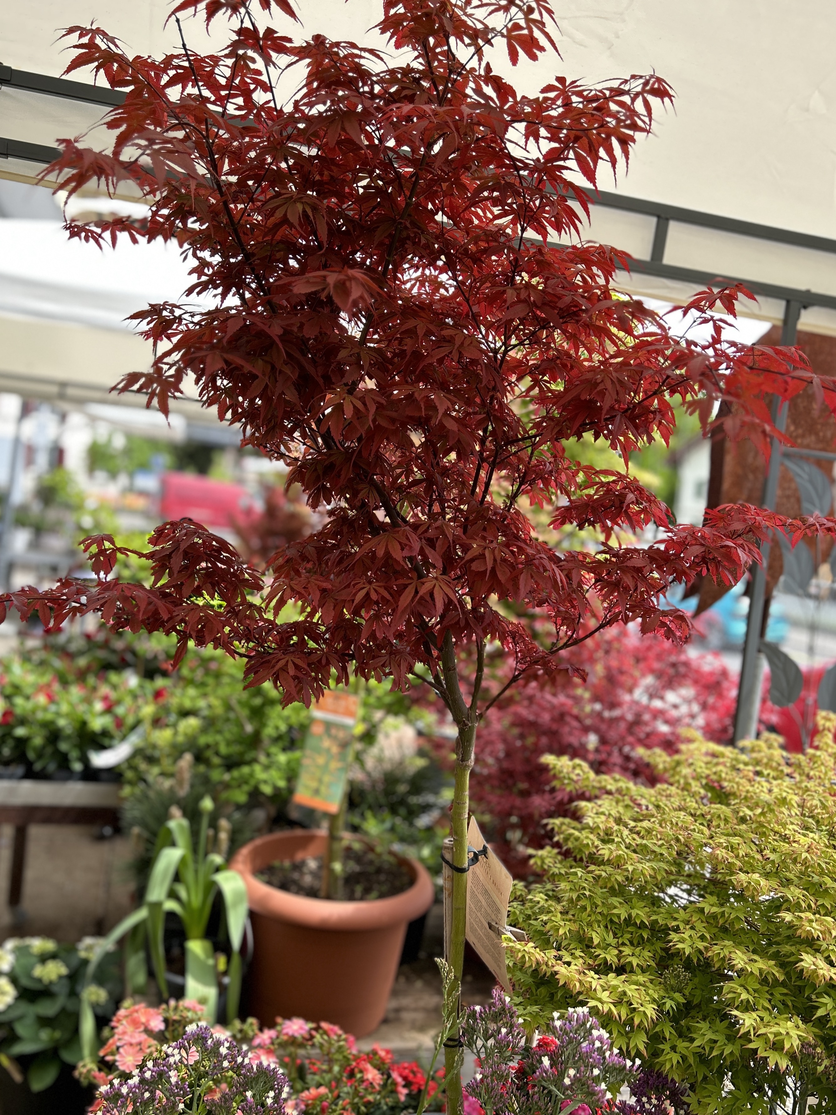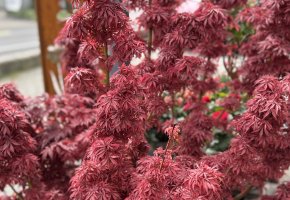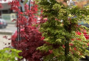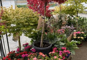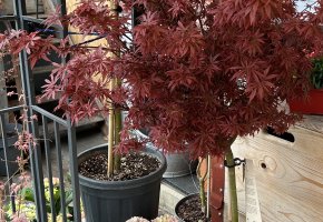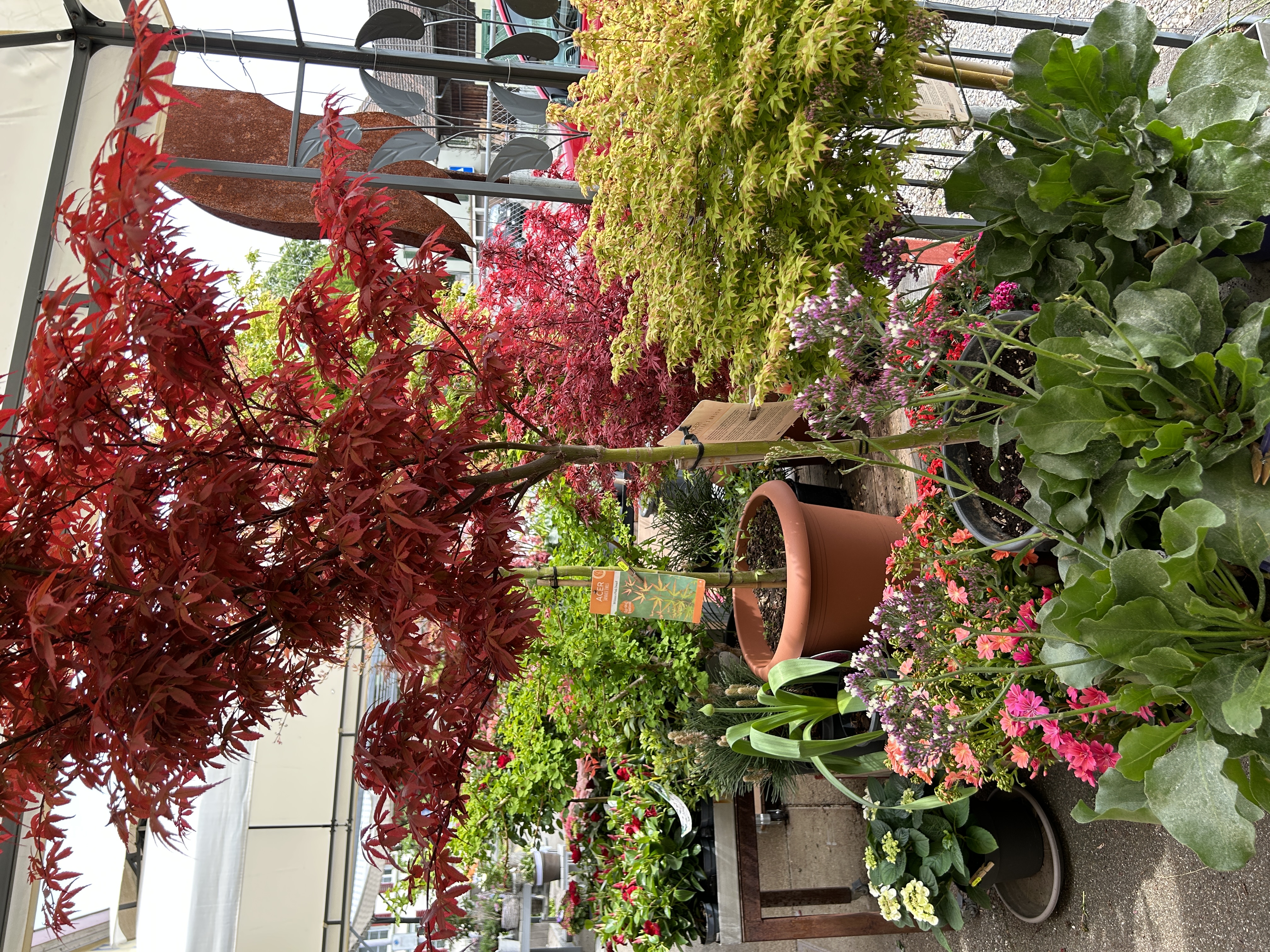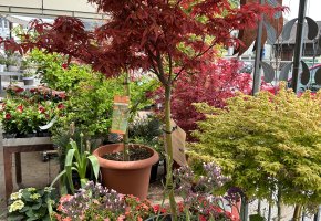 Saisonale Freiland-Pflanzen sind immer vorhanden. Eine Auswahl an Ahornbäumen in Töpfen stehen für Sie bereit.
