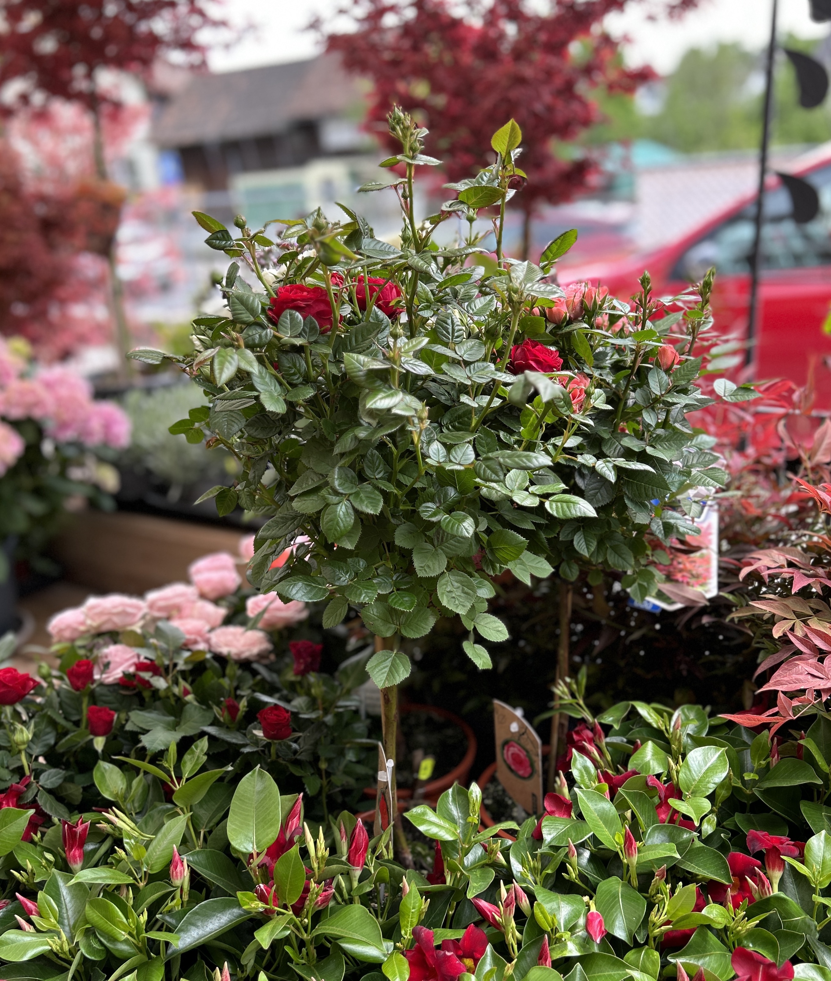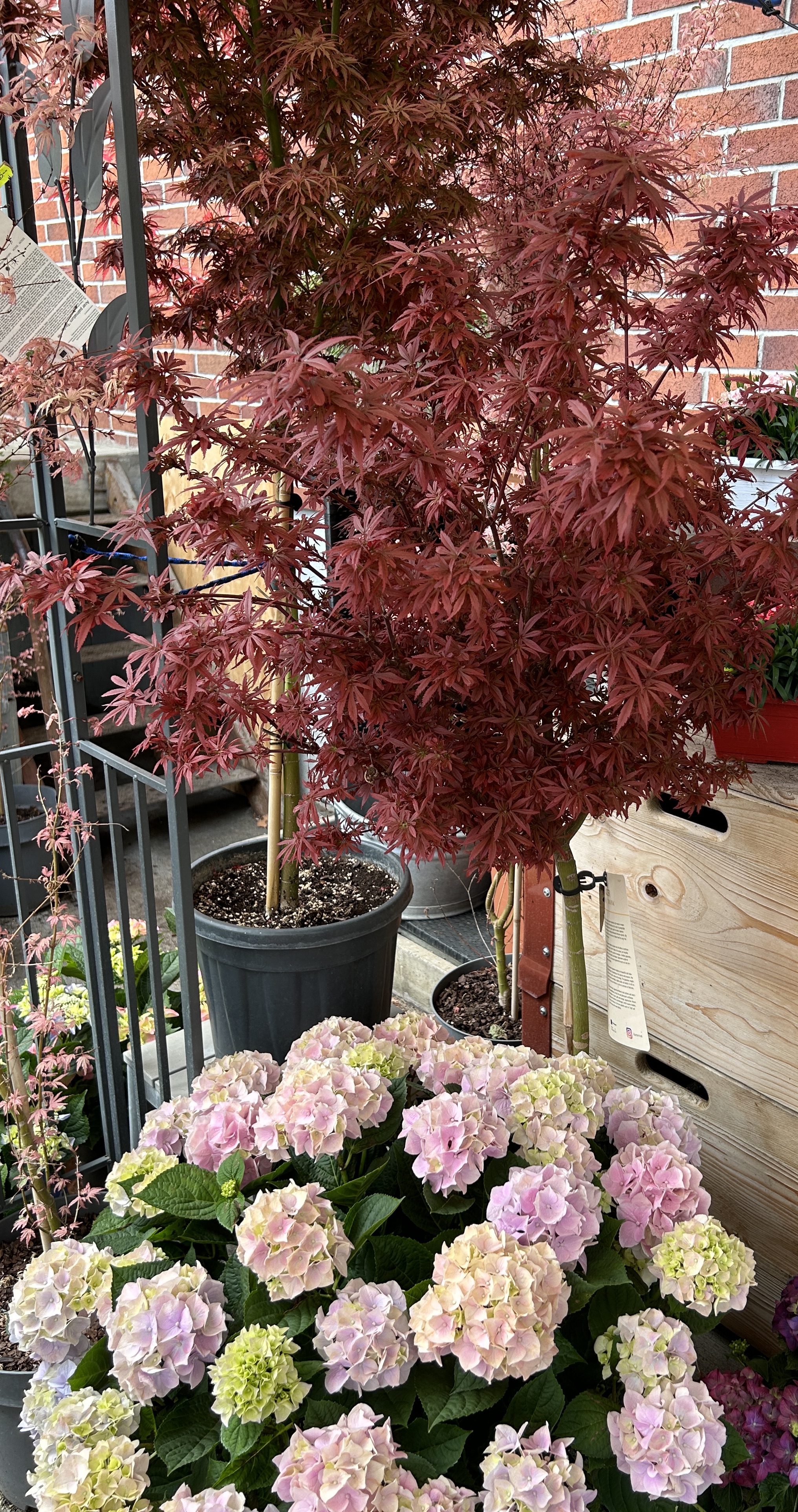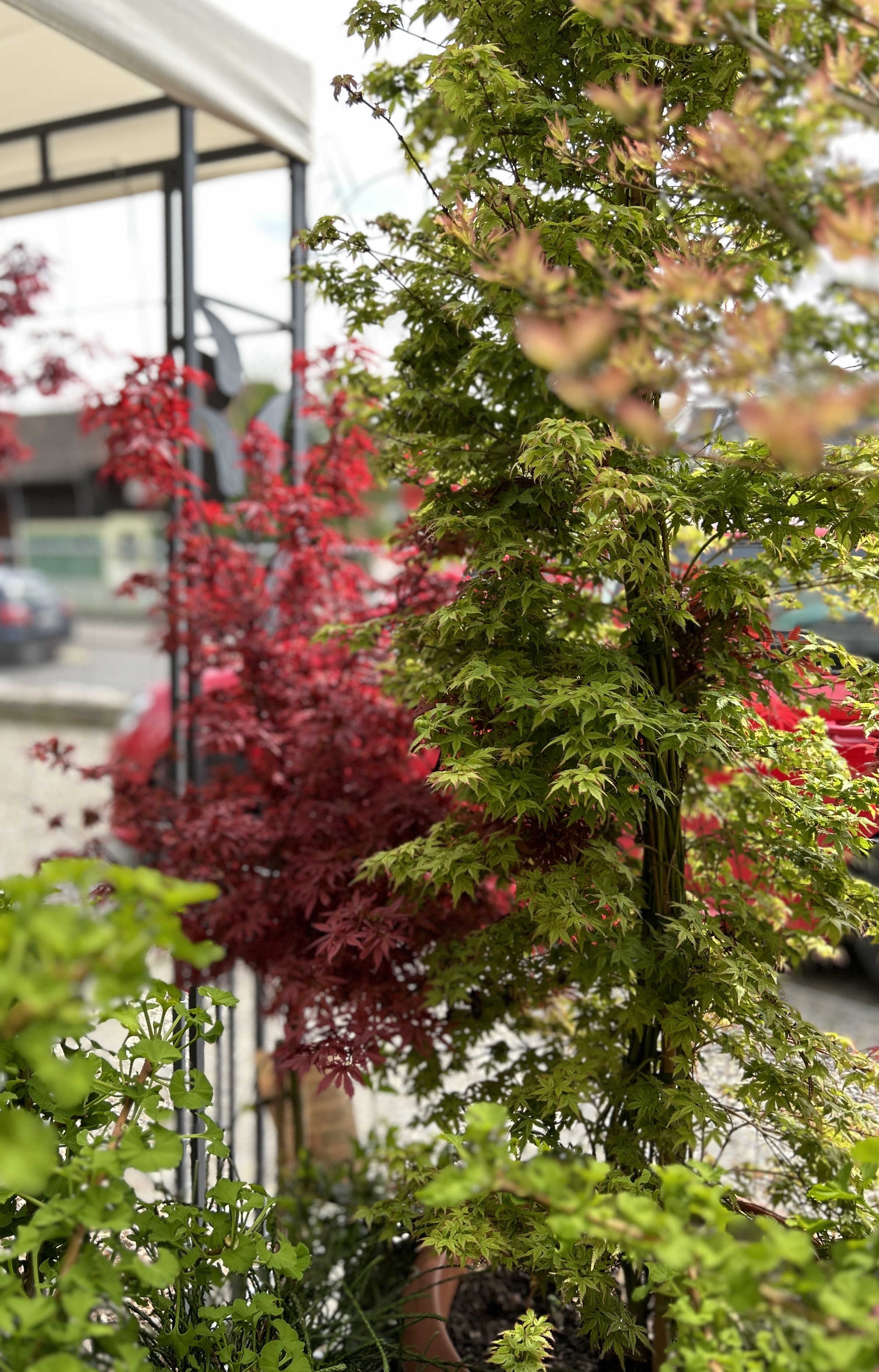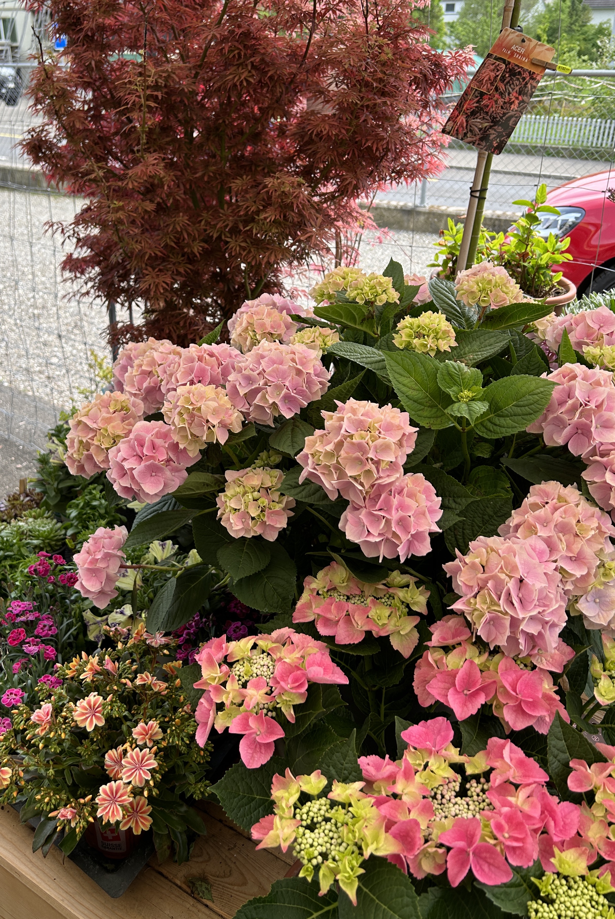 Saisonale Freiland-Pflanzen sind immer vorhanden. Eine Auswahl an Ahornbäumen in Töpfen stehen für Sie bereit.